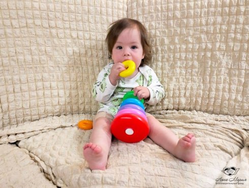 Полина – очень активная, смешная и жизнерадостная девочка, несмотря на диагноз. Она любит гулять на улице, играть со шпицем Нюшей, старается достичь результатов в обучении – уже собирает пирамидку, умеет складывать стаканчики друг в друга.