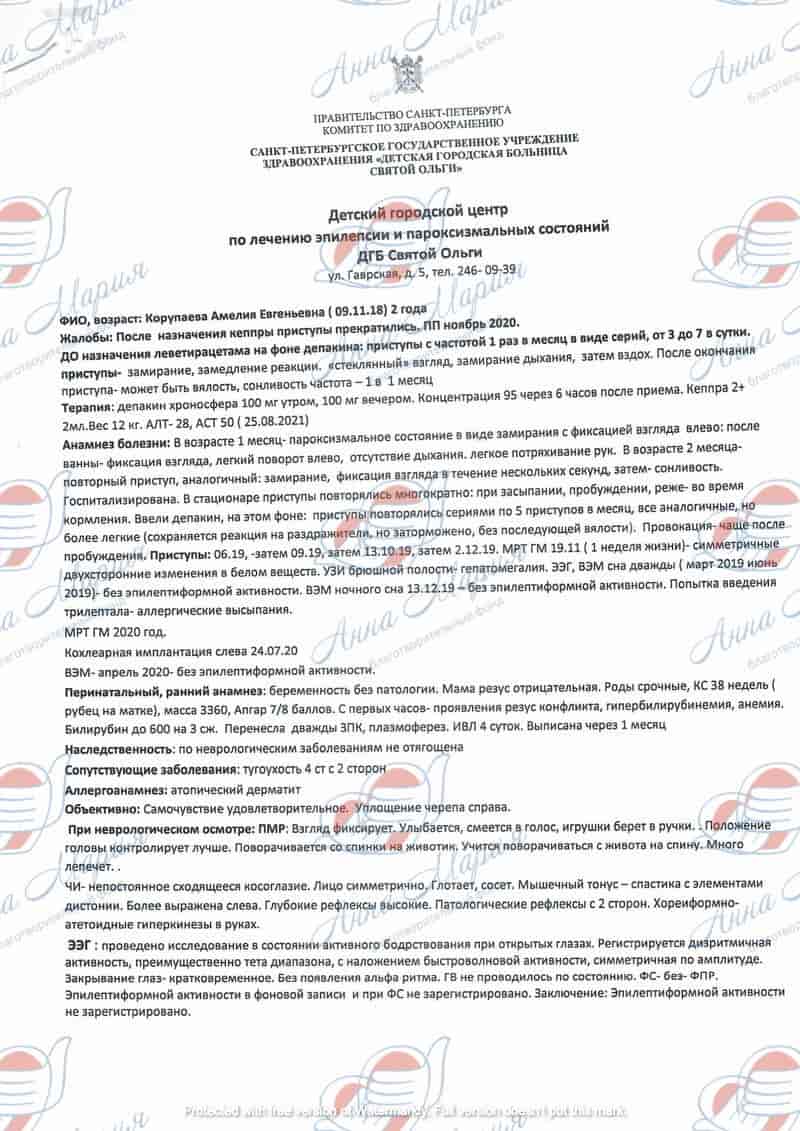 О себе: Корупаевой Амелии 3 года. Она из Санкт-Петербурга. Девочка родилась здоровой, но на вторые сутки у нее повысился уровень билирубина до критических отметок, что оказало значительное влияние на состояние здоровья ребенка.