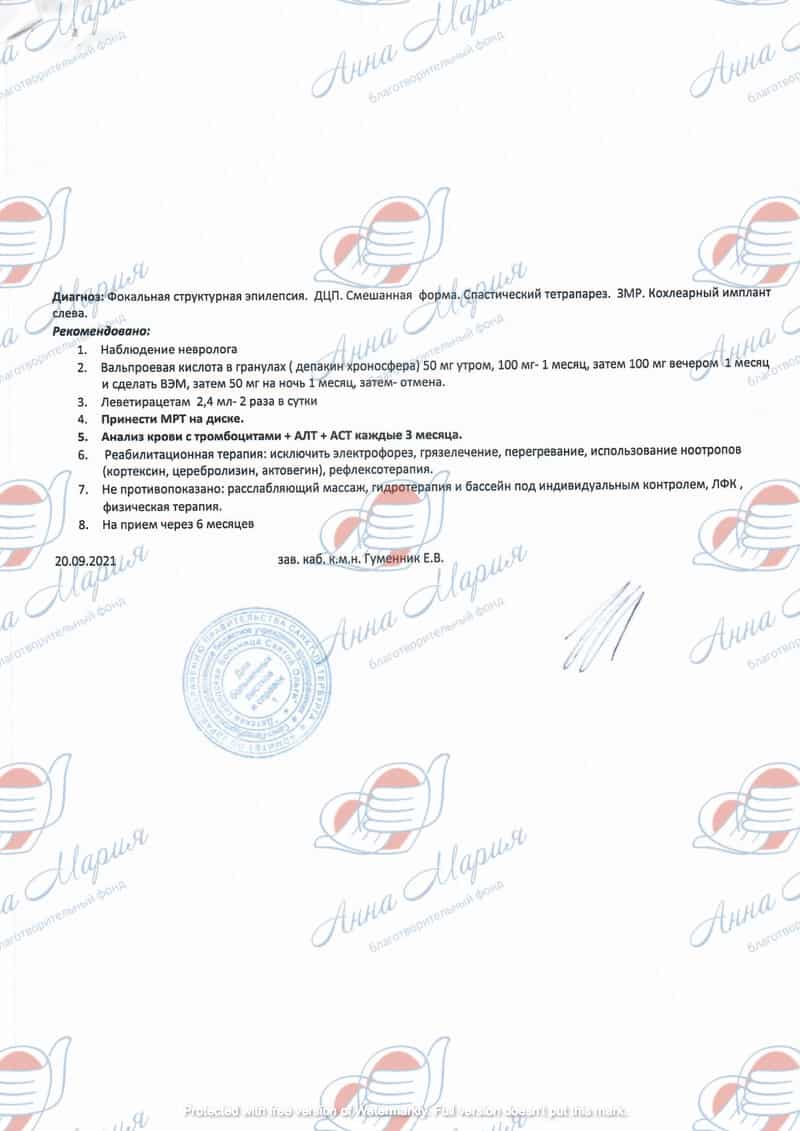 Проблема: ДЦП: смешанная форма, спастический тетрапарез. Фокальная структурная эпилепсия. ЗМР. Кохлеарный имплантат слева.