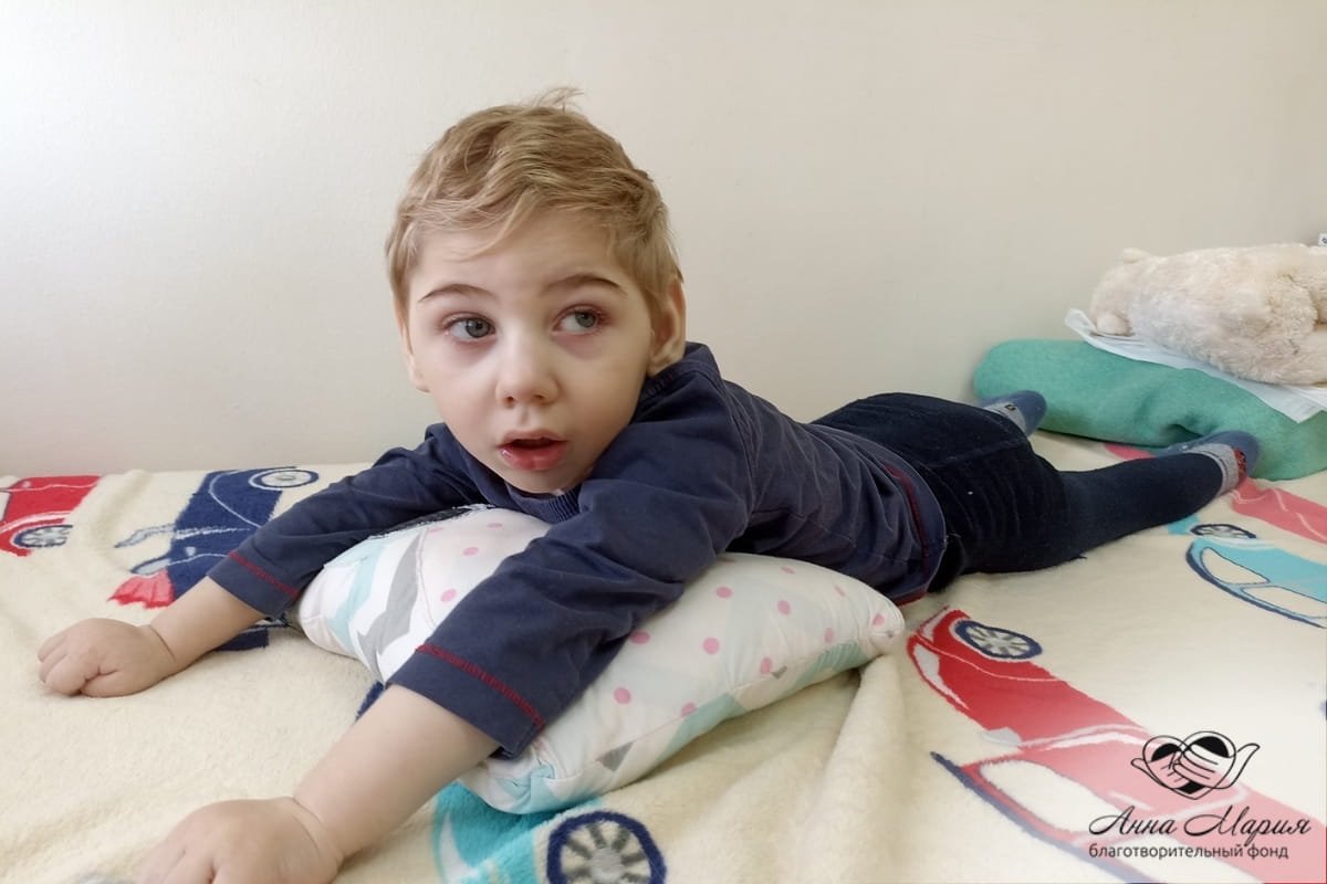 Кирилл вернулся с занятий домой и сейчас у него небольшой отдых. Мальчик занимался по методике АБМ и уже спустя несколько дней у него появились первые результаты. Кирилл начал долго лежать на полу и появились попытки перевернуться. Но ещё больше маму поразило другое - у мальчика имеются проблемы с эмоциями, так как пострадала лобная зона, и вот он начал показывать характер и даже улыбаться своей любимой игрушке. Только спустя два года усердных занятий, специалисты начали говорит, что у Кирилла всё очень хорошо получается.