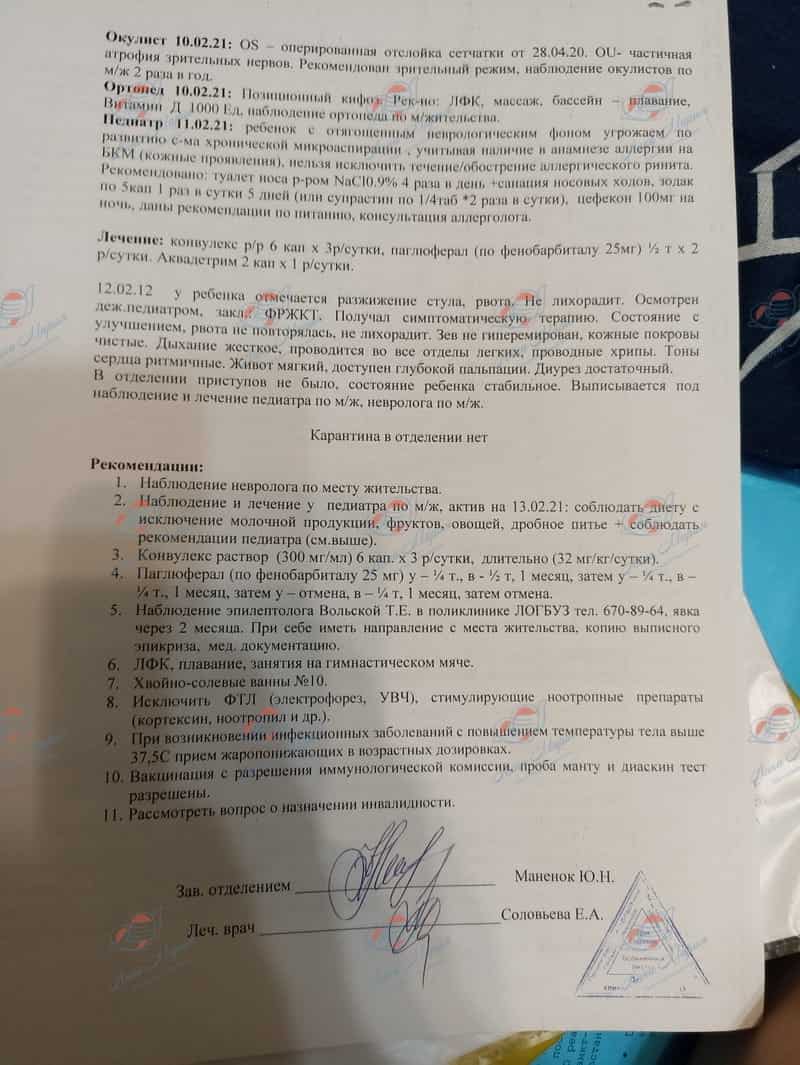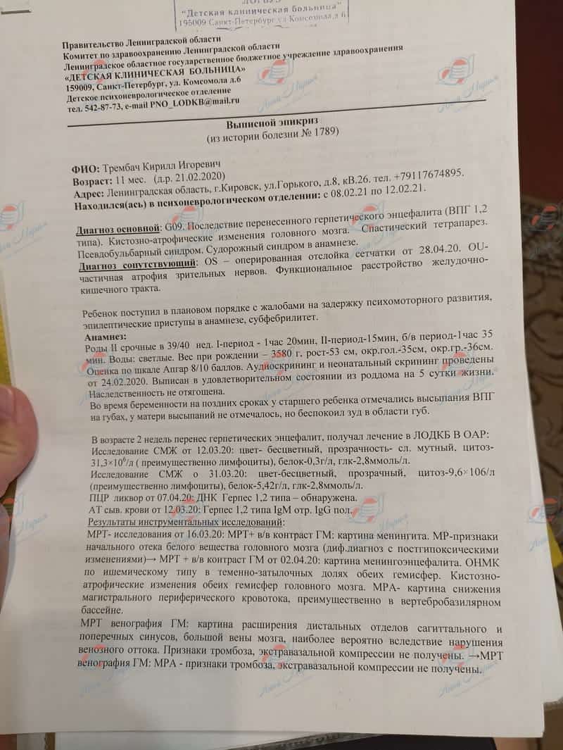 У Кирилла всё хорошо. На прошедшем осмотре у двух неврологов, Кирюшу и маму очень хвалили за то, что мальчик справляется со спастикой, нет контрактур и нет сколиоза! Это уже маленький шаг к победе – Кирилл стоит на полную стопу и хорошо чувствует опору, а когда он стал поворачиваться на голоса докторов и рассматривать их, радости мамы не было предела.