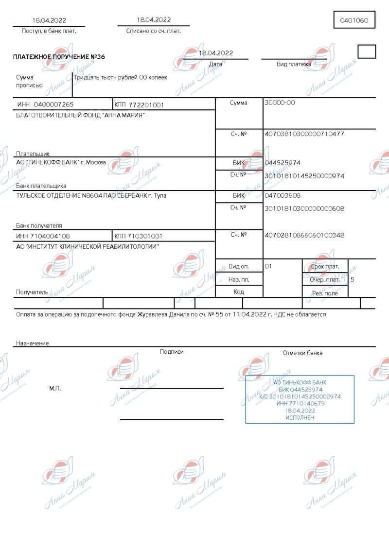 Трансплантация костного мозга в клинике «Медицинский центр Хадасса», Израиль, 255 000,00 долларов США. Частичный сбор – 5 000 000,00 (пять миллионов) рублей.
