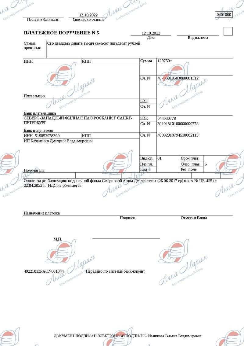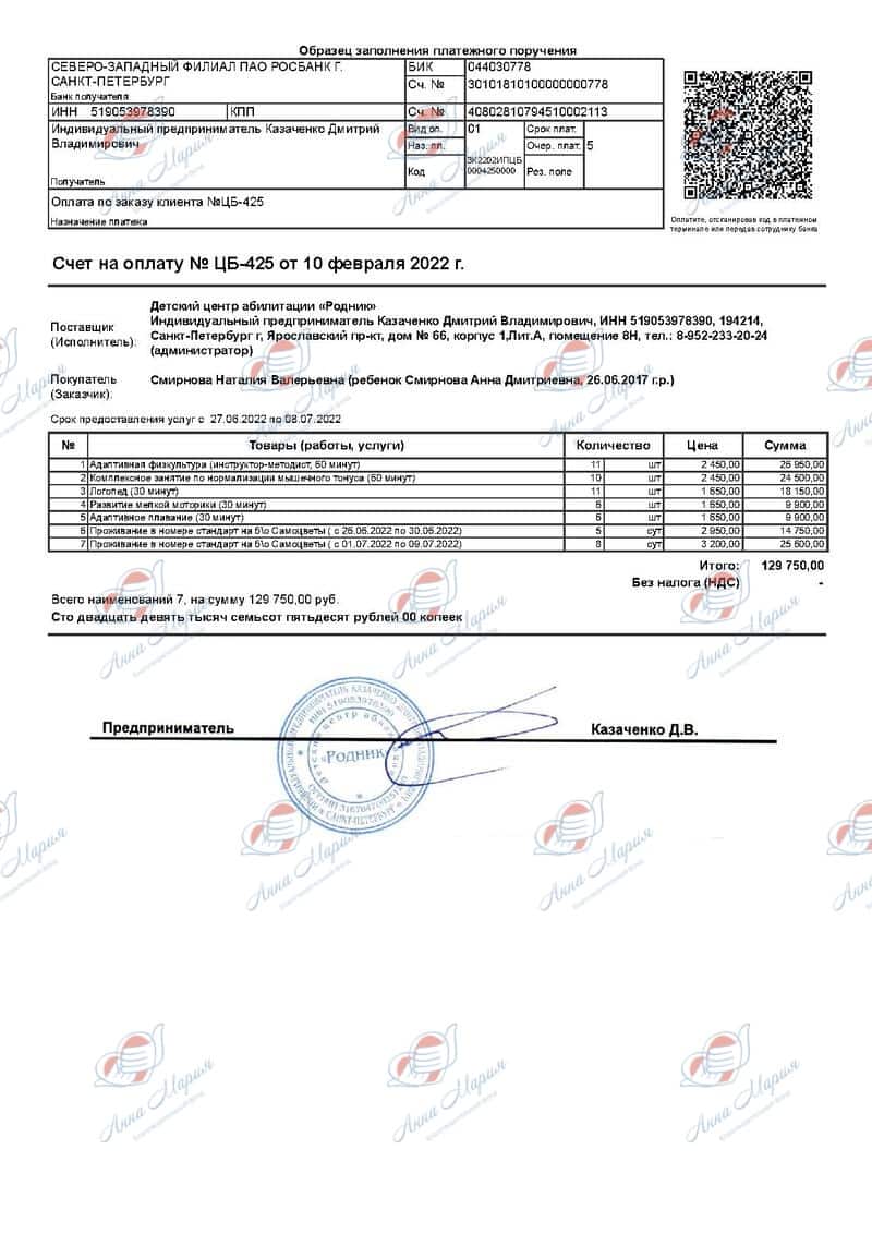В девять месяцев ребенка обследовали в детской городской больнице Санкт-Петербурга и там же Анечка прошла первую реабилитацию. Лечение без диагноза дало результат. С одной стороны – положительный, ребёнок стал держать голову и перевернулся. Но в то же время у девочки возник приступ эпилепсии на фоне лечения. Была назначена противосудорожная терапия на 2 года и запрет на какие-либо реабилитации. С того момента были доступны только массаж и ЛФК в щадящем режиме.