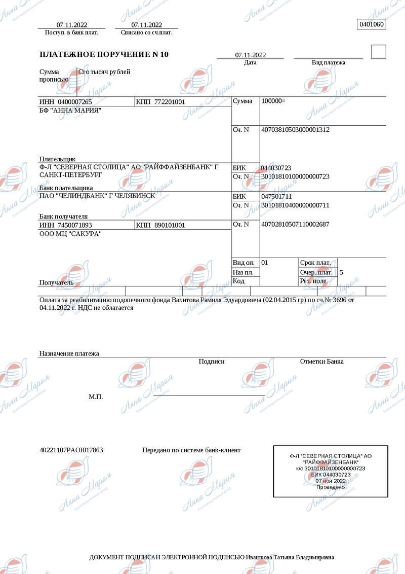 Для дальнейшей реабилитации ребенок нуждается в плановом курсе лечения в МЦ «Сакура». К сожалению, данная клиника не входит в перечень бесплатных клиник по реабилитации детей с ДЦП. На курс лечения требуется 100 тысяч рублей. Таких денег у семьи нет.