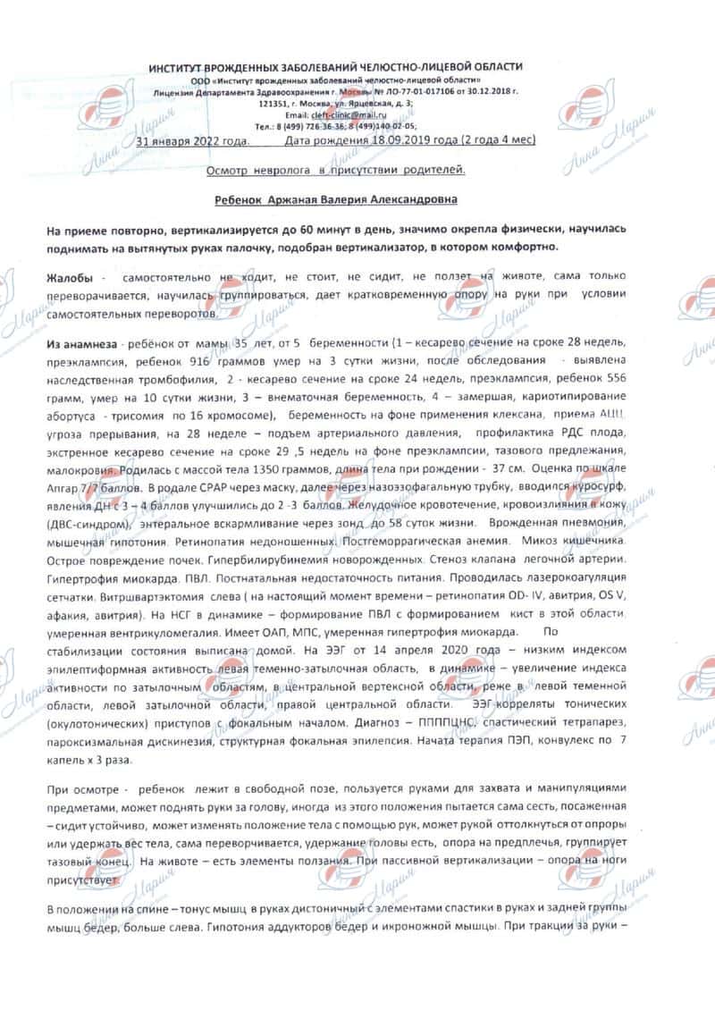 Благодаря грамотным врачам и реабилитологам родителям вернули надежду. У Леры есть все шансы жить полноценной жизнью! Ей необходимы постоянные реабилитации. До пяти лет организм благодарно откликается на лечение, поэтому жизненно важно регулярно его проходить. Но все упирается в деньги, стоимость даже одного курса реабилитации непосильна для семьи, а их требуется проходить несколько раз в год. Кроме ежедневных ЛФК, занятий с логопедом для ребёнка-инвалида нужны различные технические средства, которые стоят очень дорого.