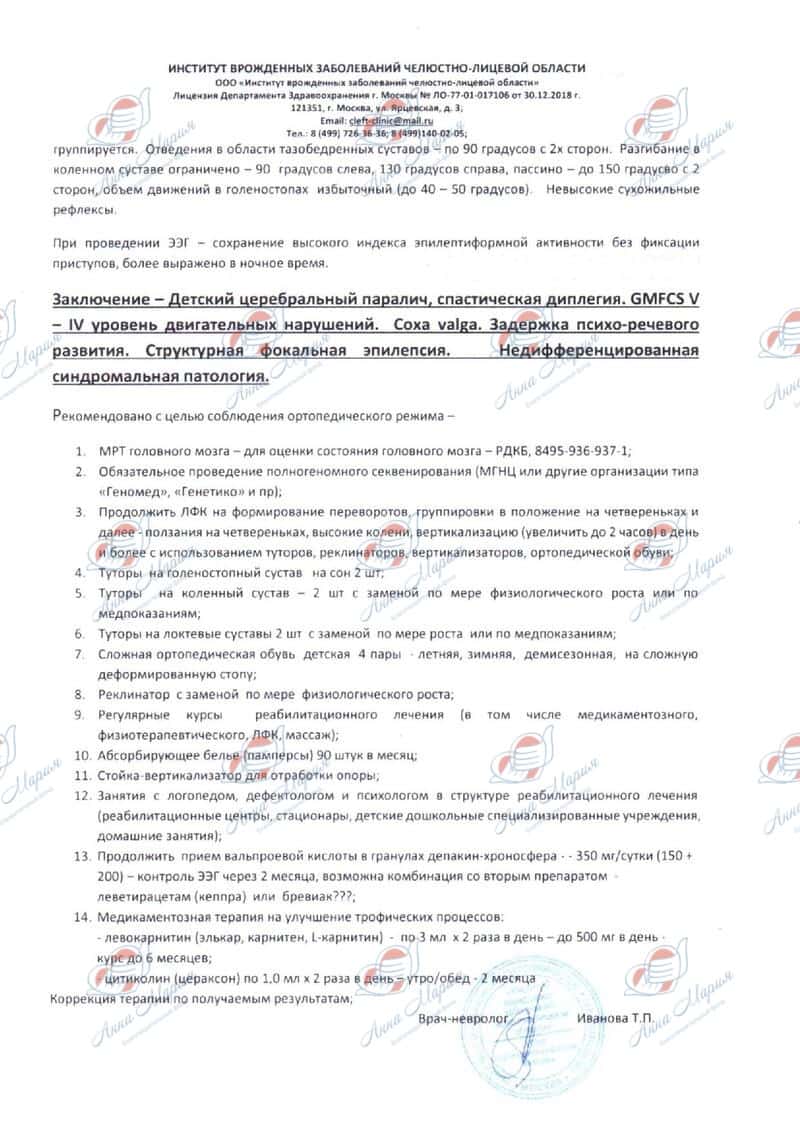 Проблема: ДЦП, спастическая диплегия. ЗПРР. Структурная фокальная эпилепсия. Недифференцированная синдромальная патология.