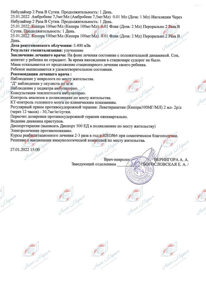 Проблема: Структурная фокальная эпилепсия. ЧАЗН. ДЦП: спастический тетрапарез. Постгеморрагическая шунтозависимая гидроцефалия. Ангиопатия сетчатки.