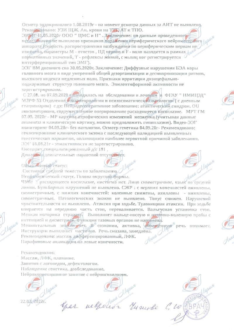 В ноябре 2021 года Лада прошла первый курс нейрореабилитации у нейропсихолога параллельно с аппаратным лечением. Положительные результаты были заметны уже на курсе. Таких курсов нейропсихологической коррекции необходимо проходить три раза в год, а также продолжать домашнюю работу по индивидуальной программе коррекции.