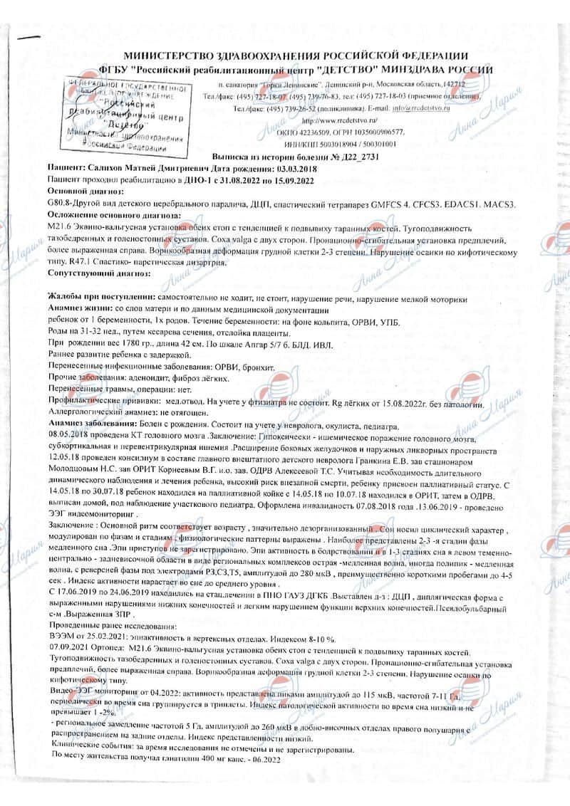 🆘 ДЦП: спастическая диплегия. GMFCS IV. Врожденный порок развития левого предплечья и кисти, лучевая косорукость, гипоплазия I пальца левой кисти. Гастроэзофагеальный рефлюкс, скользящая грыжа пищеводного отверстия диафрагмы.