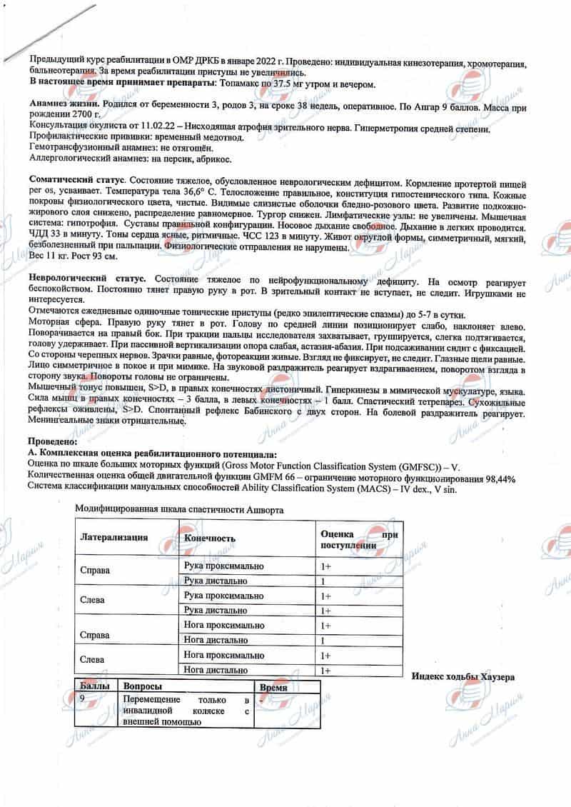 Проблема: Последствия перенесенного герпетического менингоэнцефалита тяжелой степени. Спастико-дистонический тетрапарез, гиперкинетический синдром, регресс моторного развития, задержка психо-речевого развития. Эпилепсия структурная мультифокальная с эпилептическими спазмами.