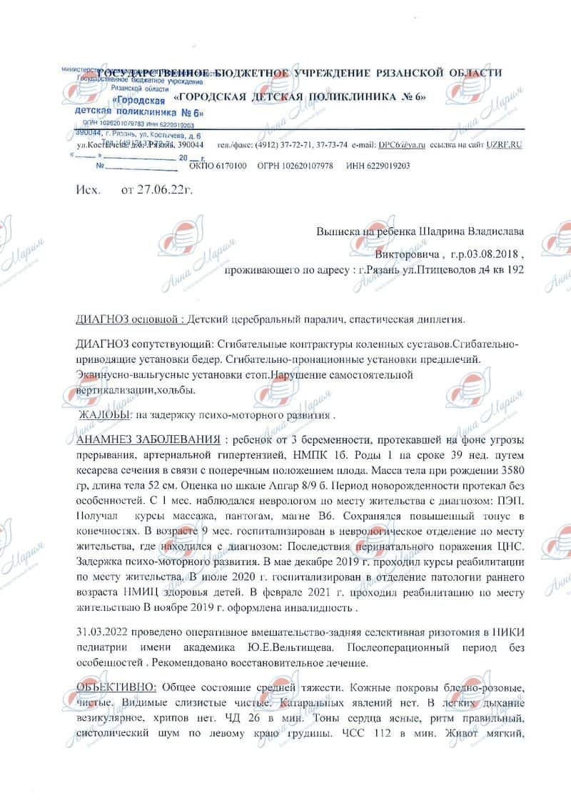 Мечту попасть на лечение в РЦ «Перый шаг» в г. Казань к специалистам по китайской медицине самостоятельно родителям осуществить не по силам. Денег на реабилитацию сына у семьи нет. Мама не работает, так как Владу нужен постоянный уход, а с папой отношения на стадии развода. Кроме алиментов отец никакой материальной помощи не оказывает. Основной доход – это пенсия ребёнка по инвалидности. Поэтому мама Владислава вынуждена просить помощи у неравнодушных людей.