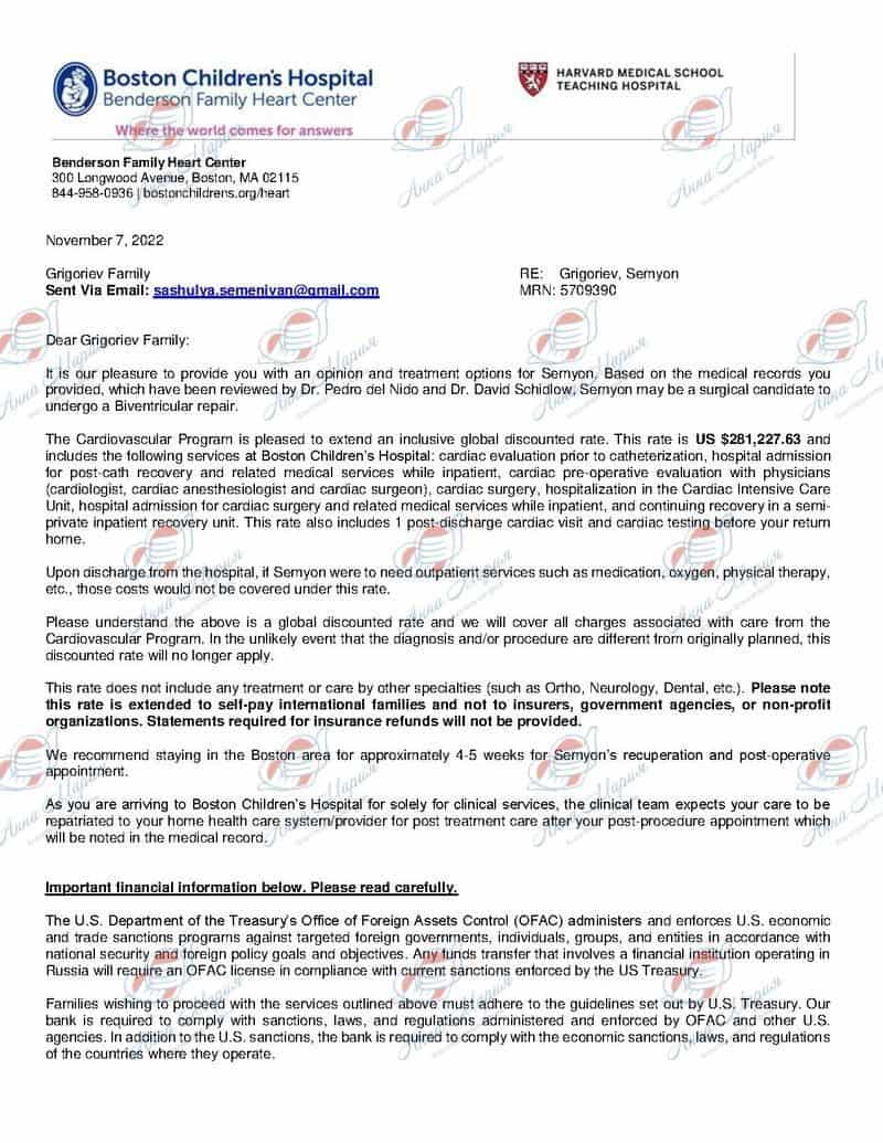 Мы очень надеемся в скором времени попасть на операцию. Бостонская клиника ждёт нас уже в августе, а времени у нас осталось очень мало. Семёну жизненно необходима эта операция. Прошу вас помогите нам, ведь моему мальчику всего-то три годика и у него еще вся жизнь впереди. Без вас нам не справится»!