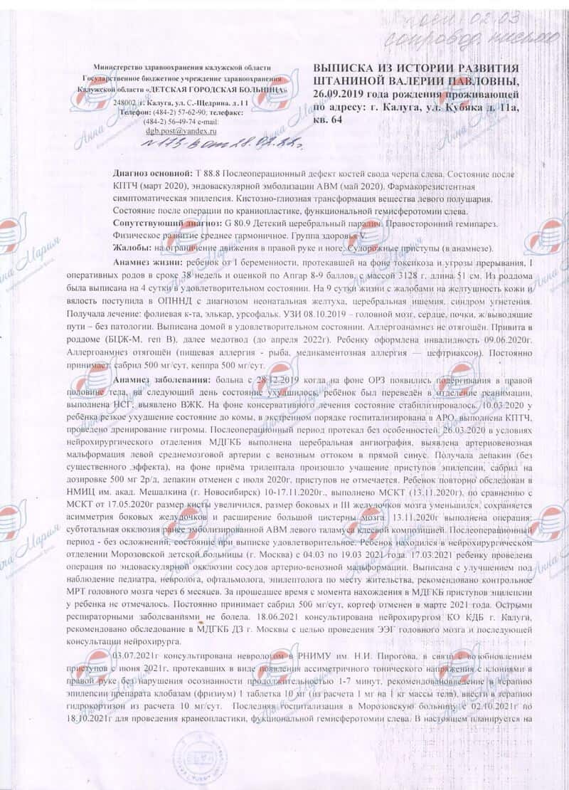 Проблема: ДЦП: правосторонний гемипарез. Фармакорезистентная симптоматическая эпилепсия.