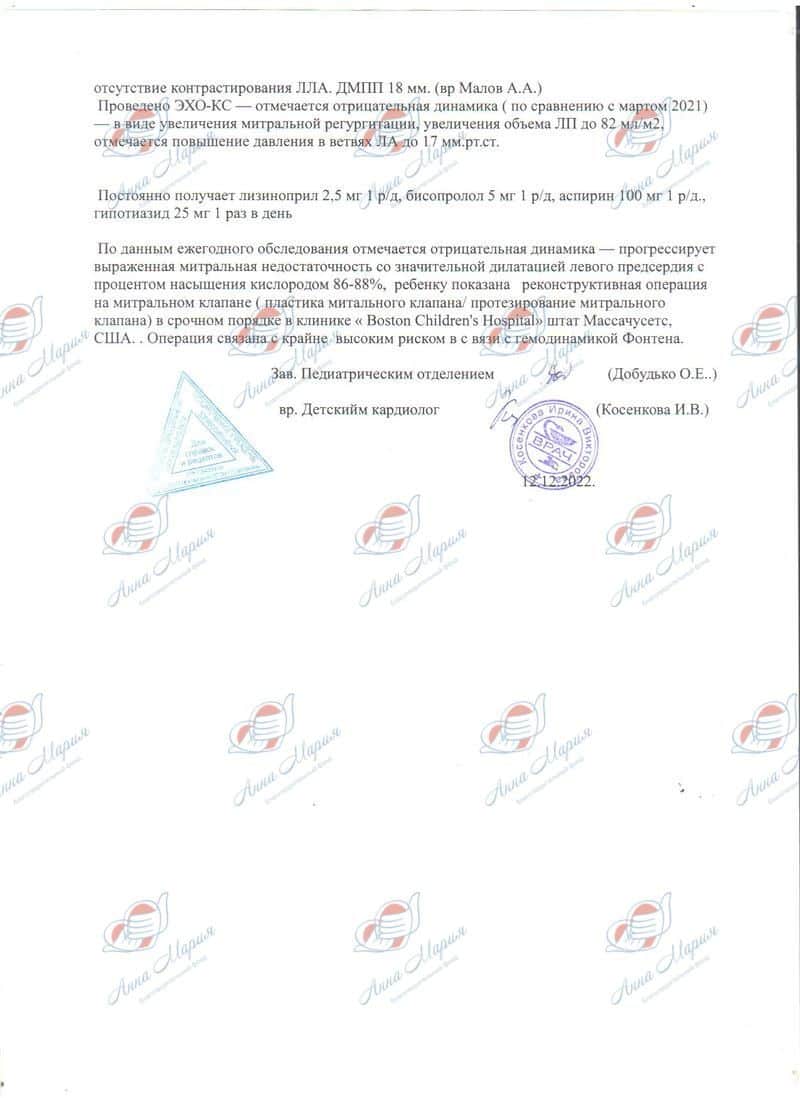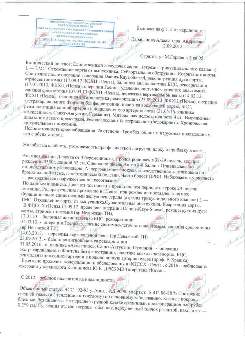 Операцию Фонтена провели в германской клинике. Она давала надежду, что сердце девочки будет работать как у здорового человека. В тот период состояние Александры улучшилось: уменьшилась одышка, кожа приобрела бледный с легким румянцем цвет. Но постепенно стала возвращаться быстрая утомляемость, цианоз, уровень кислорода в крови вновь стал падать. Обследования показали, что у Саши увеличилась степень недостаточности митрального клапана. Крайняя - четвертая степень недостаточности, следующая степень - только коллапс! В один из теплых весенних дней 2020 года у Саши резко поднялась температура. Долго лечили простуду, а в итоге все оказалось намного серьезнее - у ребенка обнаружили бактериальный эндокардит. Ее срочно госпитализировали санавиацией в ДРКБ Казани.