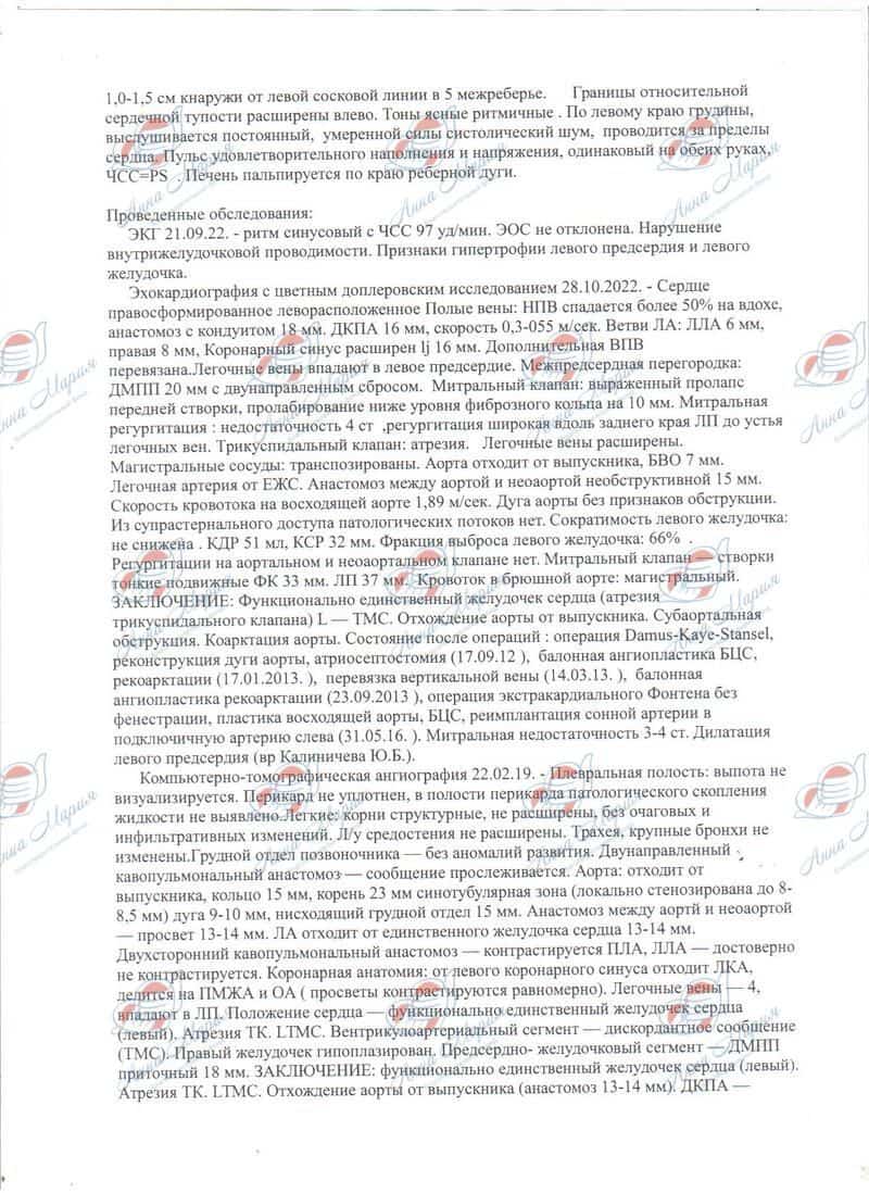 Проблема: ВПС. Единственный желудочек сердца (атрезия трикуспидального клапана) L-TMC. Отхождение аорты от выпускника. Субаортальная обструкция. Коарктация аорты. Состояние после многочисленных операций.