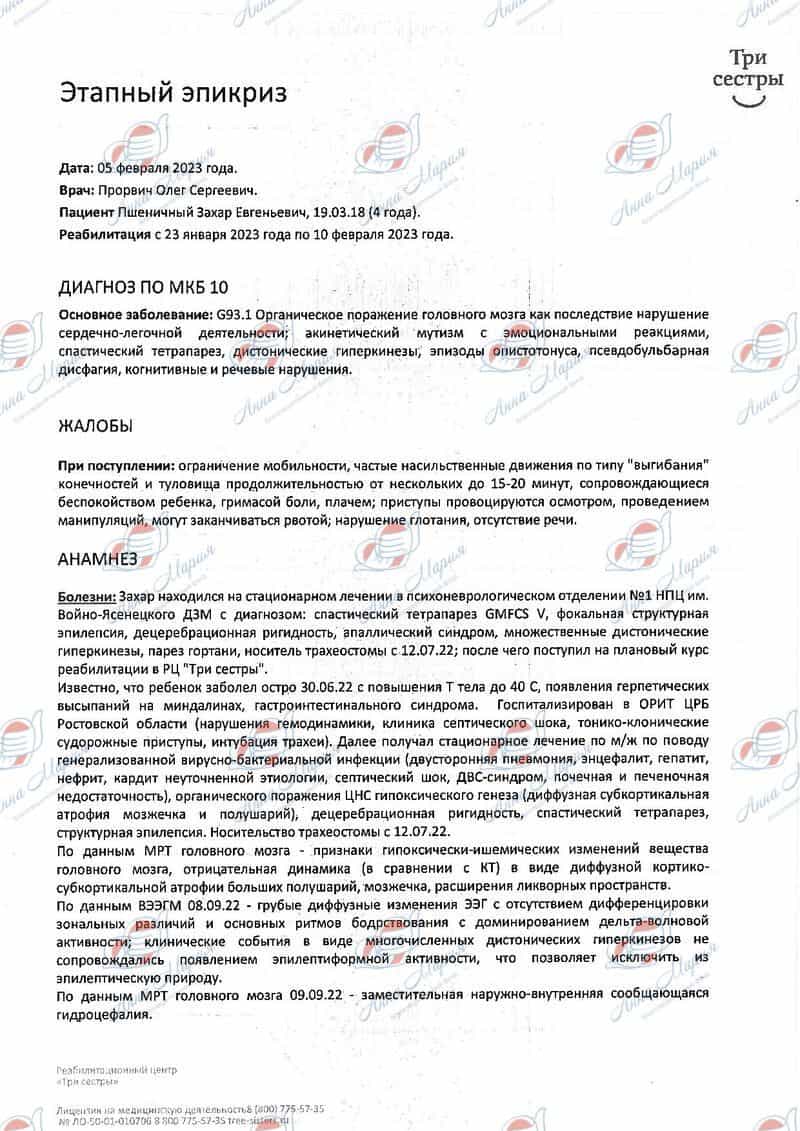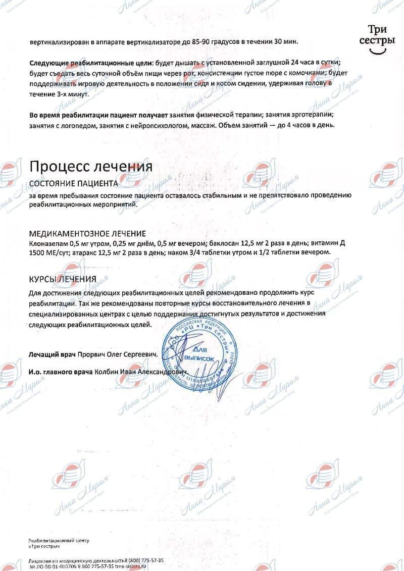 Улучшения состояния не было. Мы искали клиники, где нам бы могли помочь и попали на обследование в «Научно-практический центр специализированной медицинской помощи детям имени В.Ф.Войно-Ясенецкого Департамента здравоохранения г. Москвы». Здесь нам рекомендовали начать реабилитацию.
