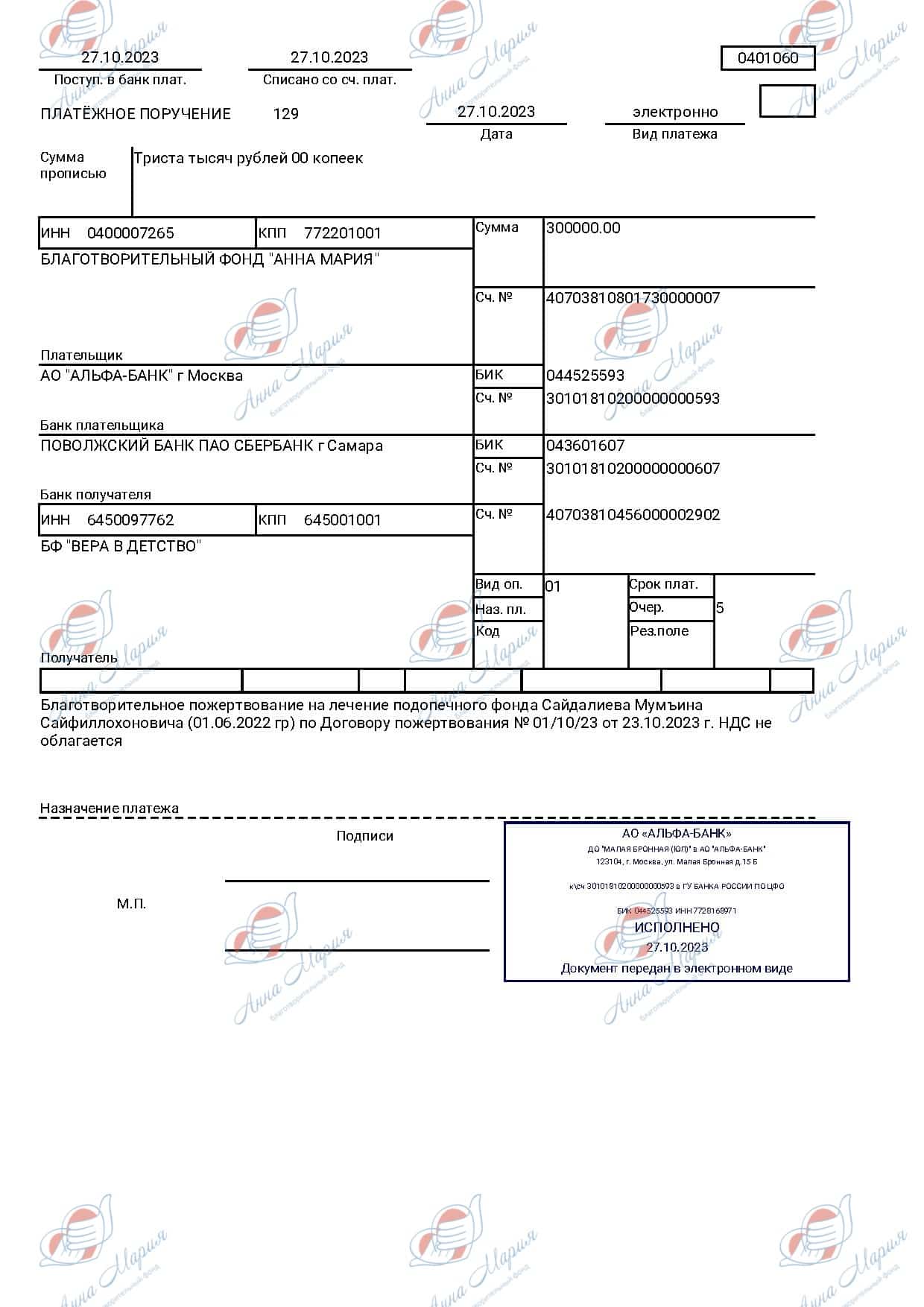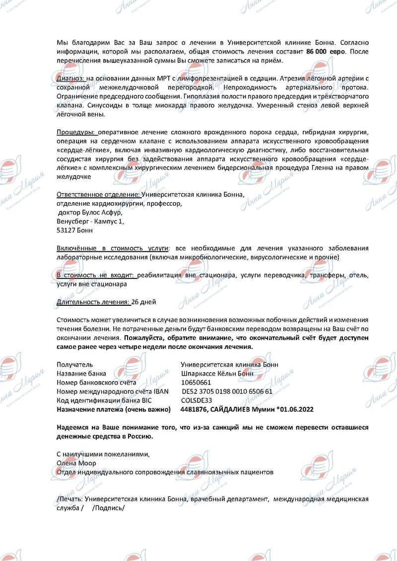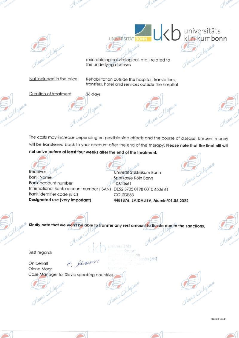 Трансплантация костного мозга в клинике «Медицинский центр Хадасса», Израиль, 255 000,00 долларов США. Частичный сбор – 5 000 000,00 (пять миллионов) рублей.