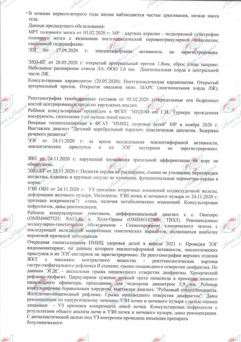 Генетический синдром неуточненый (структурные изменения головного мозга в виде гипоплазии мозолистого тела и терминальной миелинизации белого вещества в лобных, затылочных и теменных долях.