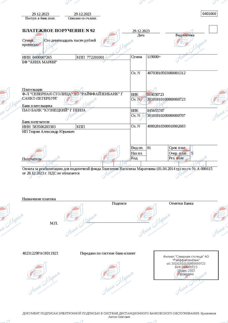 Трансплантация костного мозга в клинике «Медицинский центр Хадасса», Израиль, 255 000,00 долларов США. Частичный сбор – 5 000 000,00 (пять миллионов) рублей.