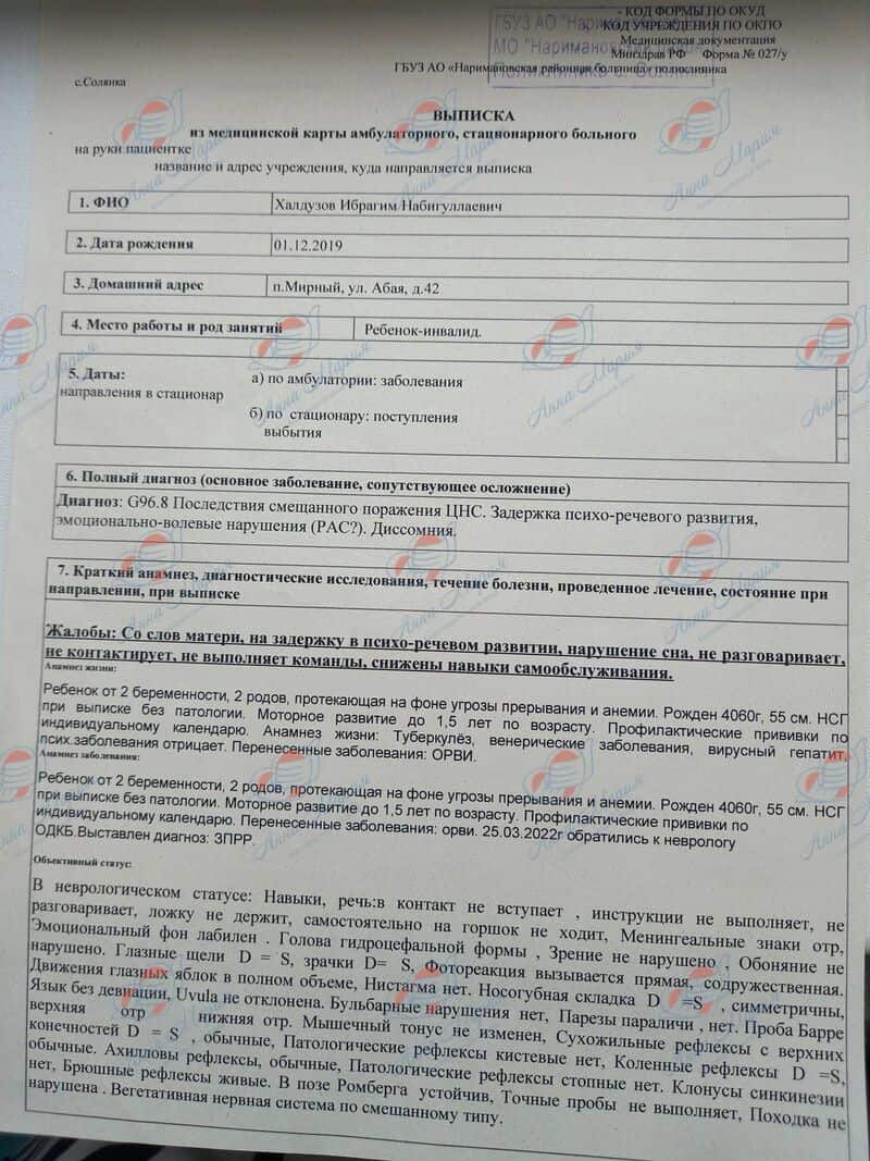 Откат в развитии произошел после перенесенного в полтора года ковида. Заболевание протекало на фоне высокой температуры и симптомов острой распираторной инфекции. После болезни Ибрагима перестали интересовать игрушки, он не собирает свои любимые пирамидки, не реагирует на просьбы. До двух лет мальчик не откликался на свое имя.