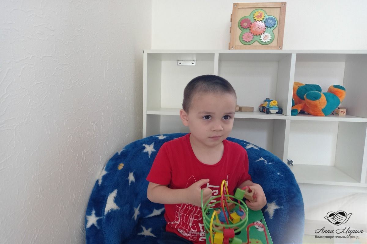 Родители не оставляют малыша без внимания. Ибрагим постоянно проходит медикаментозное лечение, занимается с нейрологопедом, АВА-терапией и адаптивной физкультурой, ходит в бассейн.