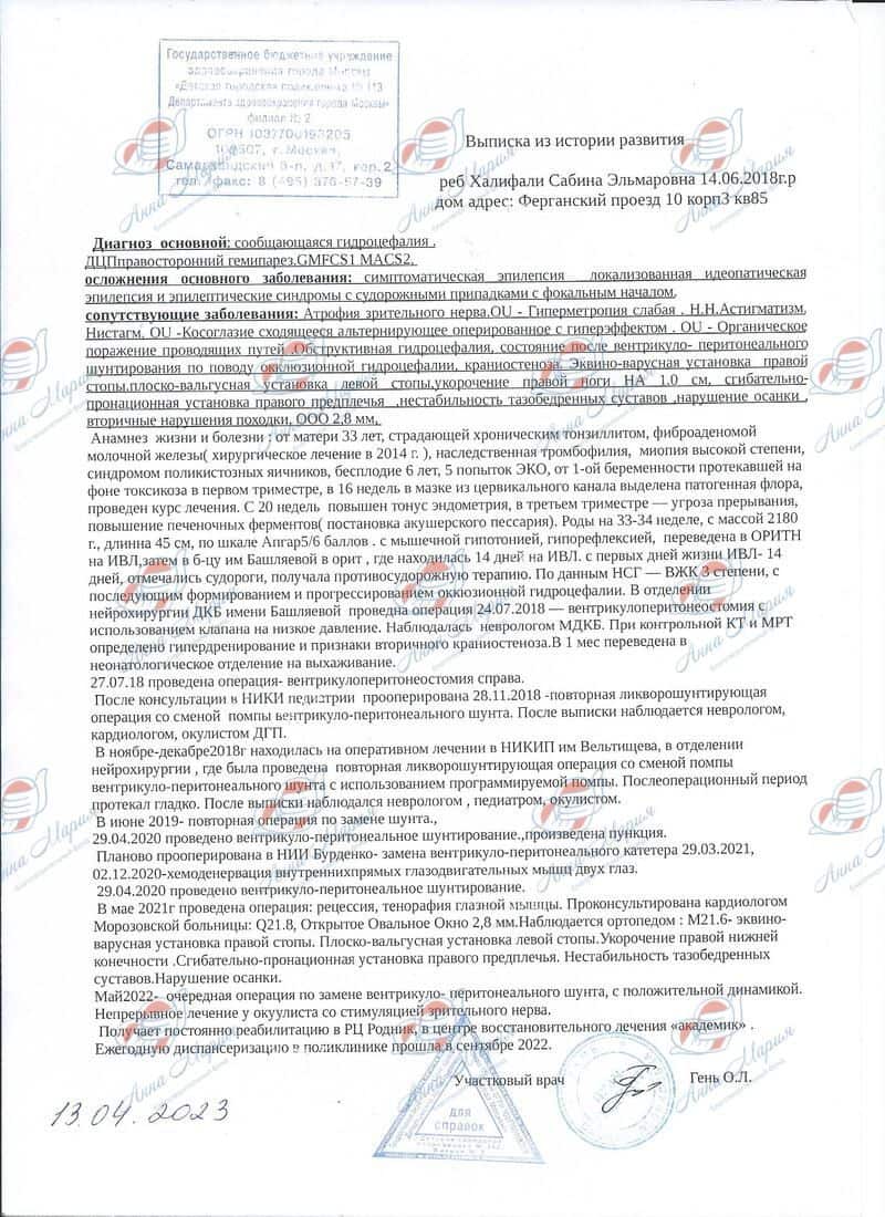 Проблема: ДЦП: правосторонний гемипарез. Симптоматическая эпилепсия. Атрофия зрительного нерва. Гидроцефалия.