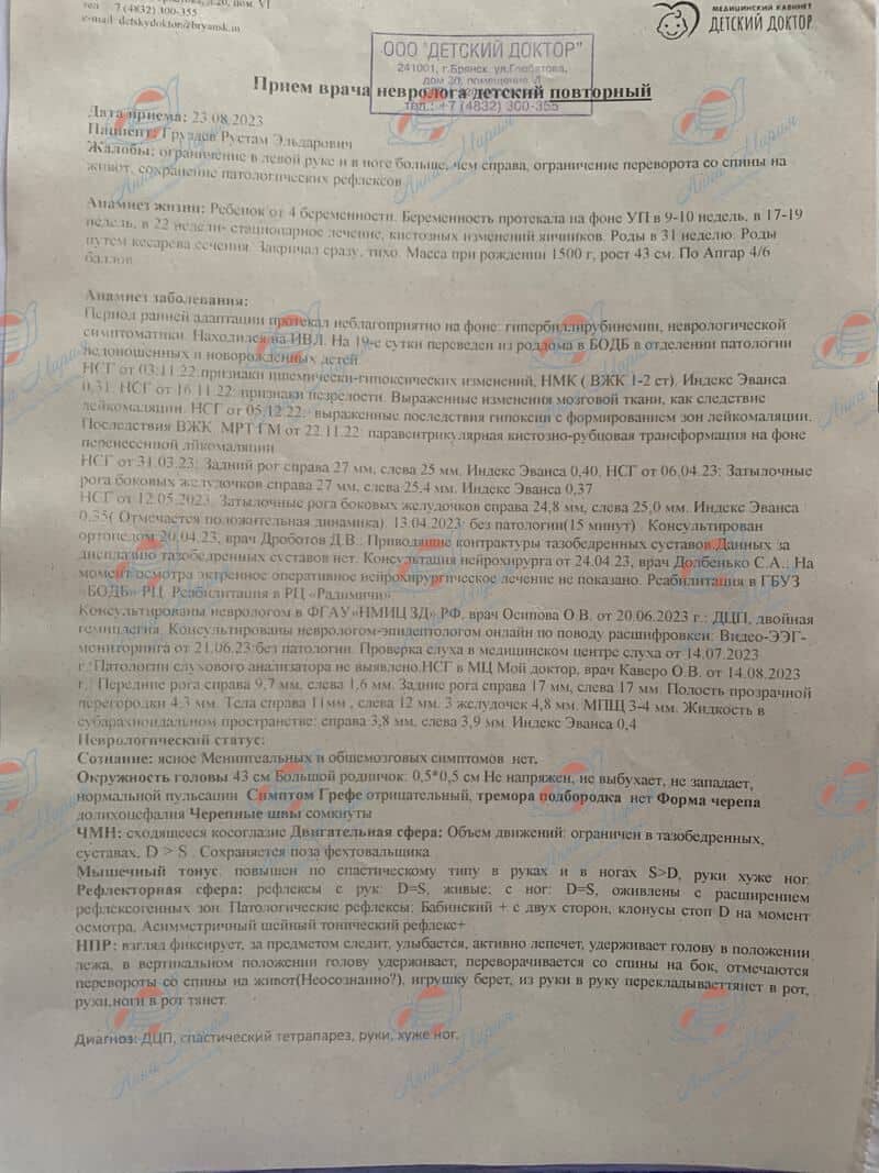 О себе: Маленький Рустам из Брянска родился раньше срока. Тяжёлое гипоксически-ишемическое поражение головного мозга привело к ДЦП.