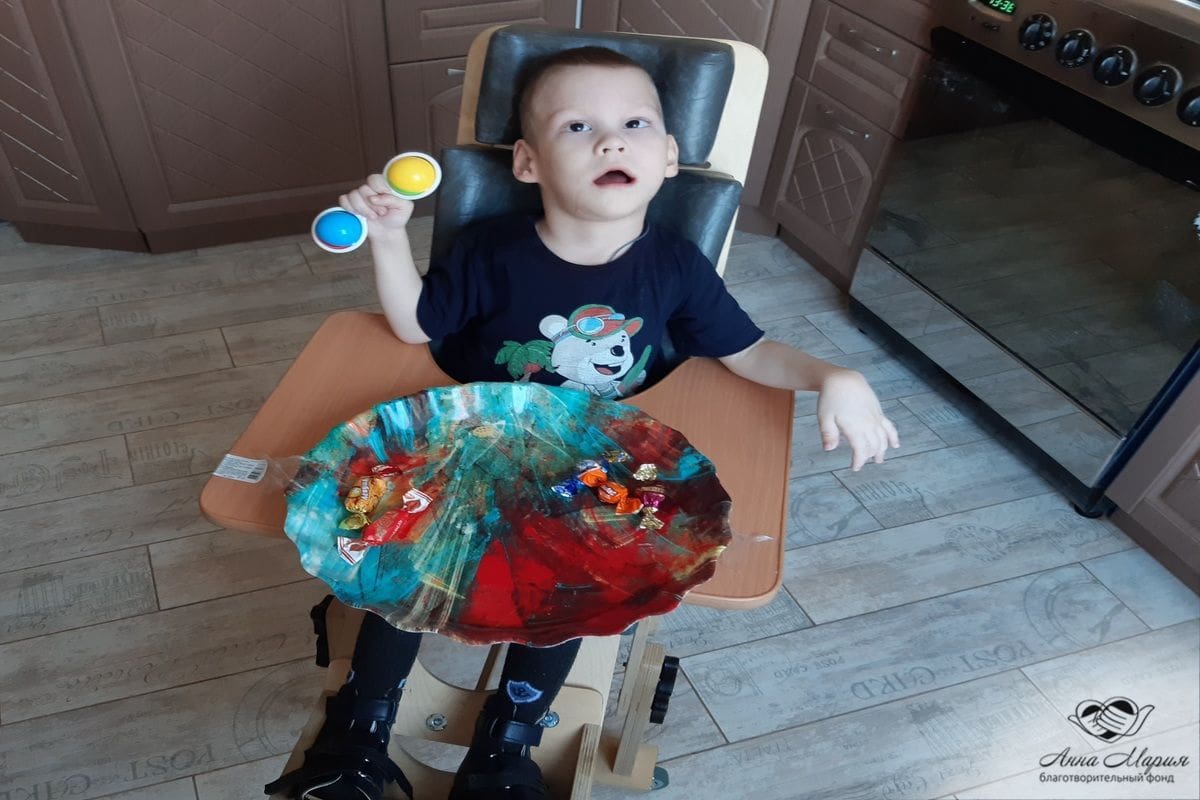 О себе: Развитие трехлетнего малыша Ярослава идет с большой задержкой. Мальчик пострадал от внутриутробной гипоксии и родился преждевременно. Серьезный диагноз ограничивает ребенка в движениях и не позволяет наслаждаться детством.