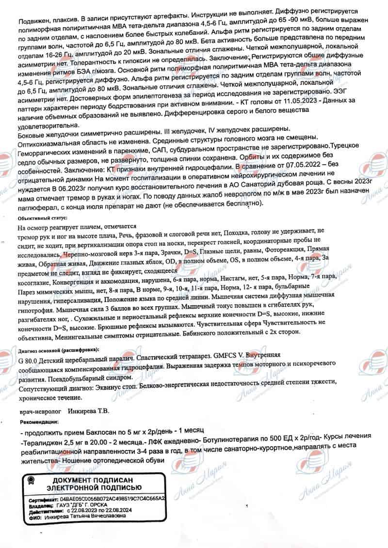 Проблема: ДЦП: спастический тетрапарез. Выраженная задержка темпов моторного и психоречевого развития.