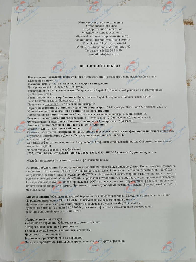 В городе, где живет семья Чурсиновых, нет центров реабилитации. Каждую неделю мальчика возят в соседний город на занятия ЛФК и в бассейн. Было пройдено два курса интенсива – они дали хороший результат. Специалисты говорят, что это маленькие шаги к достижению главной цели. Родители готовы сделать все, чтобы приблизить этот момент.