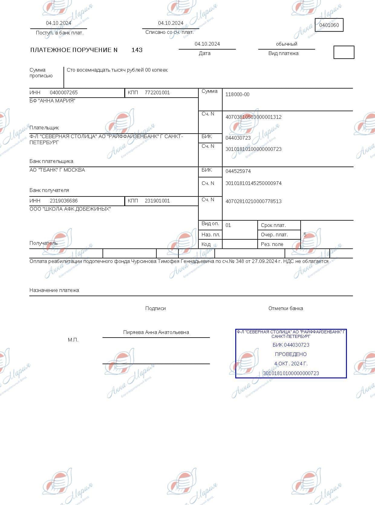 Так как основным направлением работы благотворительного фонда «Анна Мария» является помощь детям, мы объявляем открытым сбор средств для маленького Тимофея. Мы будем благодарны, если вы сделаете пожертвование удобным для вас способом.