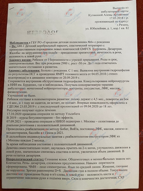 За 6 лет Алёна перенесла две операции – операция по методу Ульзибата и СДР.