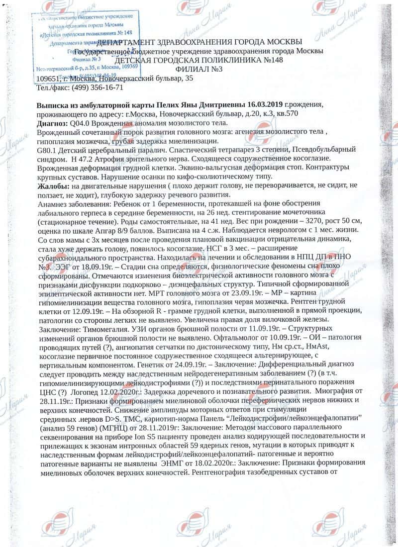 Яна родилась в срок, осложнений в процессе беременности не было. Роды прошли хорошо и спокойно – 8/9 баллов по шкале Апгар. До трех месяцев девочка была абсолютно здорова, родители не замечали отклонений. Очень радовались, когда она начала лежать на животике, держать головку! Потом Яне сделали прививку «Пентаксим».