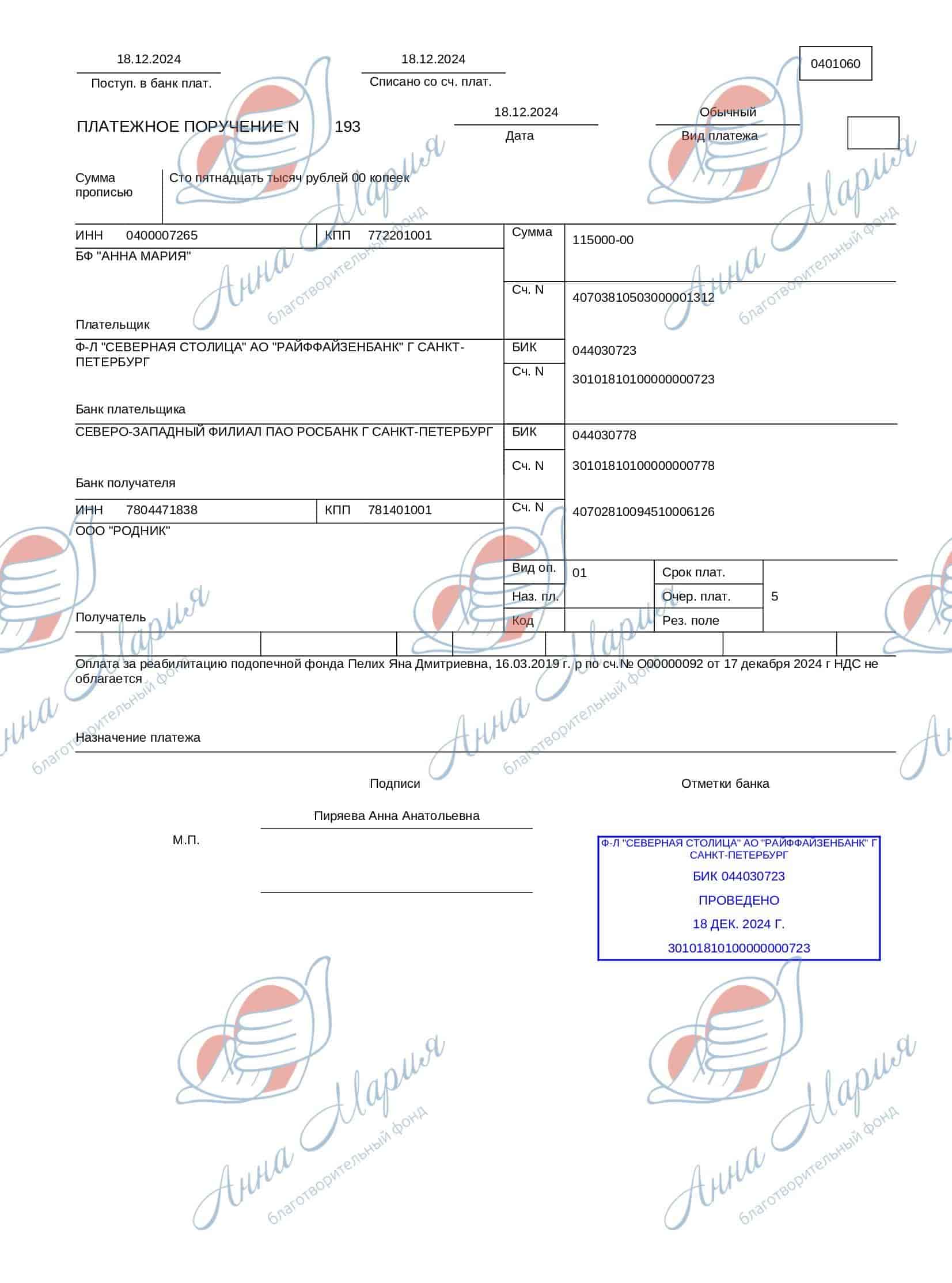 Специалисты ДЦА «Родник» согласны взять девочку на очередной курс реабилитации. Они наблюдают ее уже несколько лет, знают рост и динамику в развитии, видят прогресс и дают положительный прогноз. Их единственный совет – не упустить время. В связи с этим благотворительный фонд «Анна Мария» открывает сбор средств.