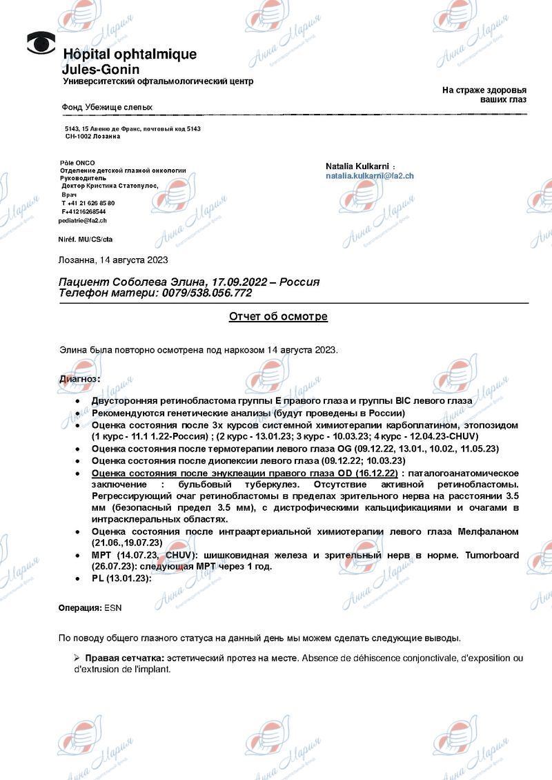 В то же время в России врачи сказали – глазик не спасти, необходимо удалять. На этот шаг семья не пошла, было принято решение продолжать лечение за границей. К сожалению, врач из клиники в Швейцарии также сказал, что вероятность сохранить глазик минимальный. Курс общей химии был сделан сразу же, в течение нескольких дней.