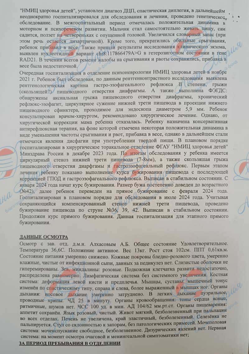 Врачи могут взять его на дальнейшее лечение. Они согласны провести специальную ортопедическую операцию с последующей реабилитацией, что поможет устранить некоторые последствия ДЦП и улучшить двигательные способности ног.
