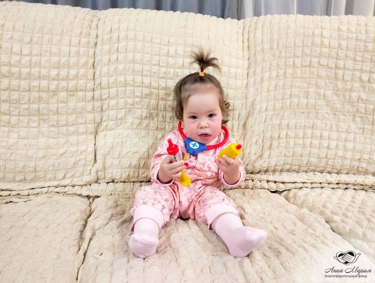 В год Полина научилась сидеть, но не долго – постоянно заваливалась, падала. Редко проявляла эмоции, а когда ее фотографировали, не могла улыбаться – нижняя губа постоянно «перекашивала». На фоне этого девочка снова прошла обследование у невролога, который поставил диагноз ДЦП. Новость была, как гром среди ясного неба. С тех пор у Полины начались регулярные курсы реабилитации, которые длятся до сих пор.