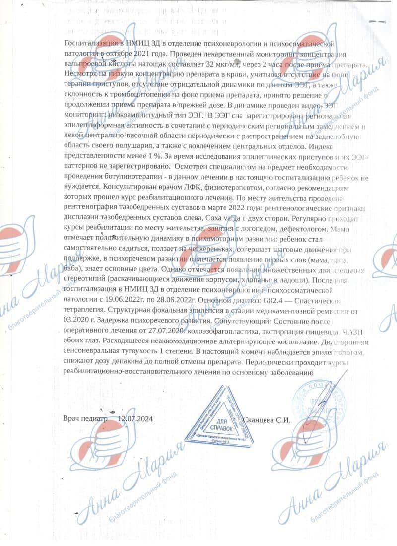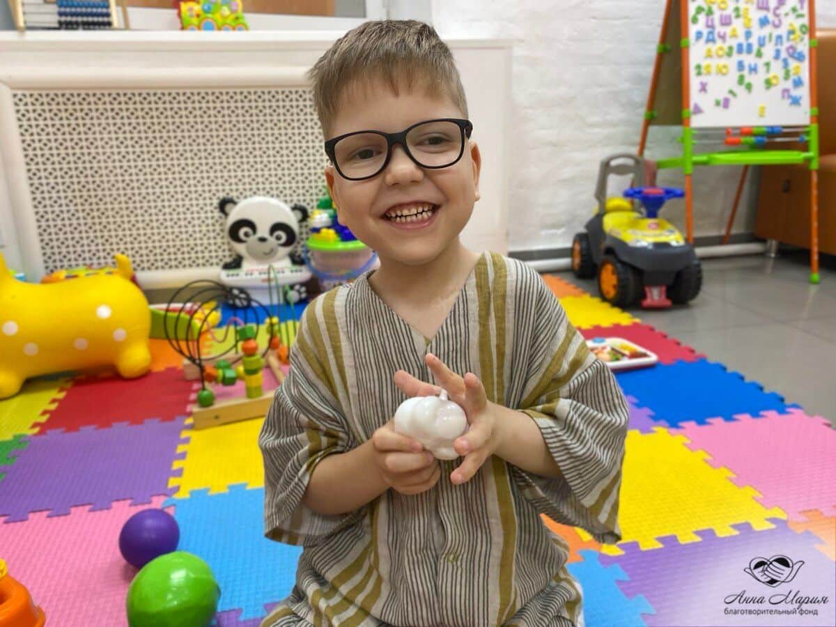 За время лечения Никита достиг больших результатов. Сейчас он уверенно ходит вдоль опоры, повторяет звуки животных, хорошо обучается всему новому, проявляет настойчивость, если что-то решил сделать. Из-за сенсорной недостаточности есть большая проблема с жеванием. Также Никита боится громких звуков, поэтому у него пока нет друзей. Впереди – долгая и тяжелая работа по восстановлению.