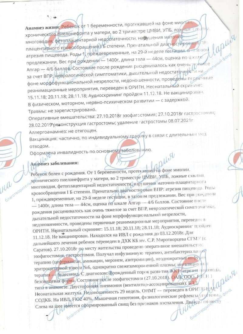 В результате питание вытекало, желудочный сок разъедал поверхность кожи, а сама гастростома выпадала, ее несколько раз зашивали. Никита пережил кровоизлияние, большое количество наркозов, позже ему поставили эзофагостому – жизнь еле спасли.