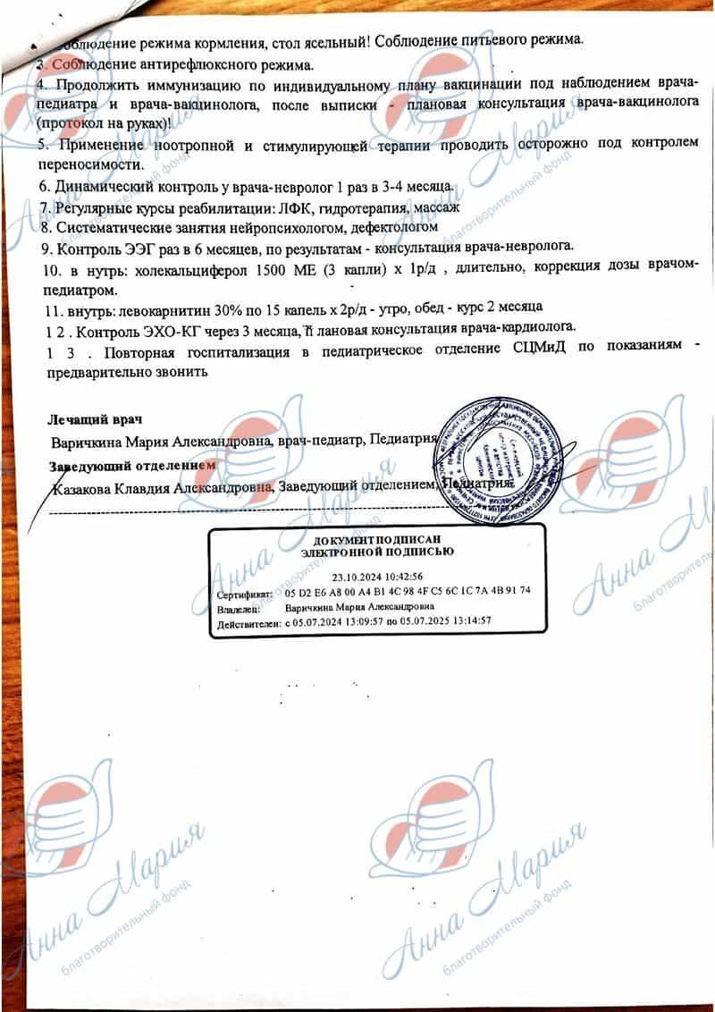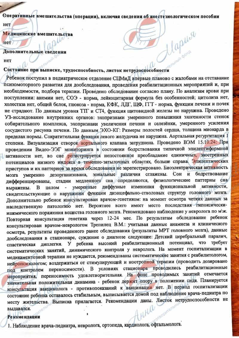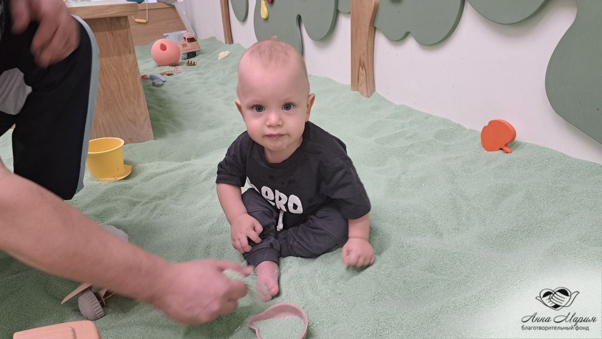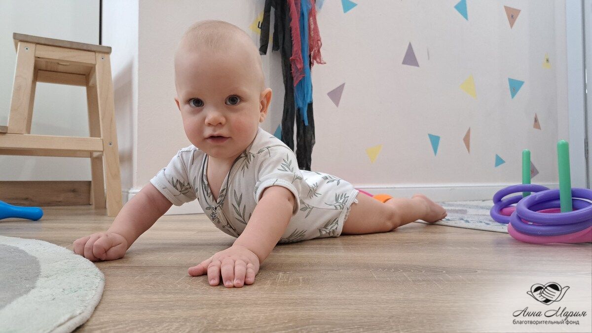 Петя растет спокойным, жизнерадостным и очень улыбчивым мальчиком, несмотря на диагноз, который был поставлен. Он любит двух своих старших сестер, всегда положительно реагирует на гостей, умеет играть в ладушки. Произносит некоторые слоги и легкие слова – например, папа, баба, дай. Любит проводить время со своей сенсорной книгой, где нарисованы животные. Родители подали документы в отделение МСЭ и ждут вынесения решения комиссии касаемо факта оформления инвалидности.