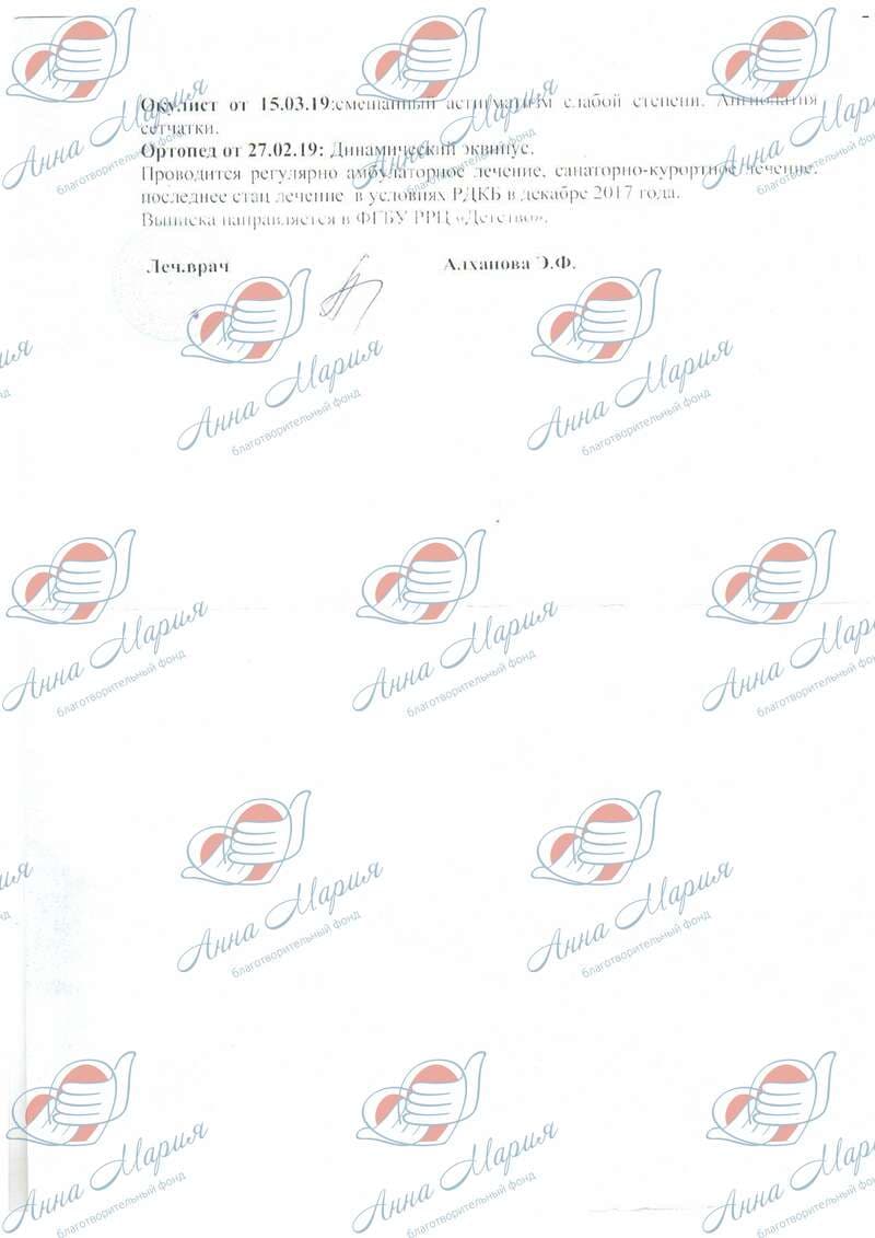 Малыша с мамой направили в Уфу, где из РДКБ госпитализировали в ДЦПиЭ. Там установили диагноз: органическое поражение ЦНС, спастический тетрапарез средней степени тяжести, поздний восстановительный период. Сходящийся страбизм. После года диагностировали ДЦП.