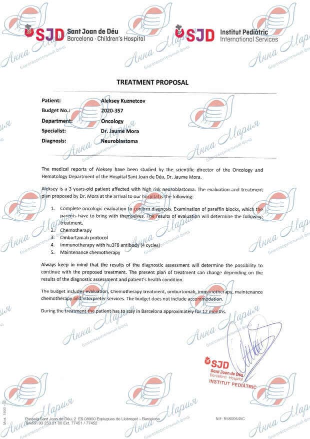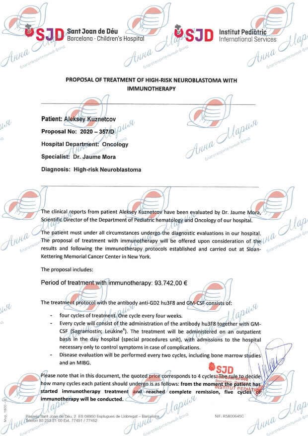 Мы прошли лечение в НМИЦ ДГОИ имени Дмитрия Рогачева в Москве. Алеша перенес несколько блоков химиотерапии, операцию по удалению надпочечника, лимфоузлов и части диафрагмы, высокодозную химиотерапию и пересадку костного мозга. Самое главное, Леша ответил на лечение, и нам была рекомендована иммунотерапия, что подтверждено протоколом консилиума врачей клиники.