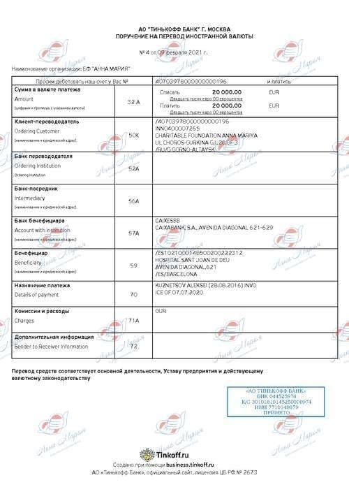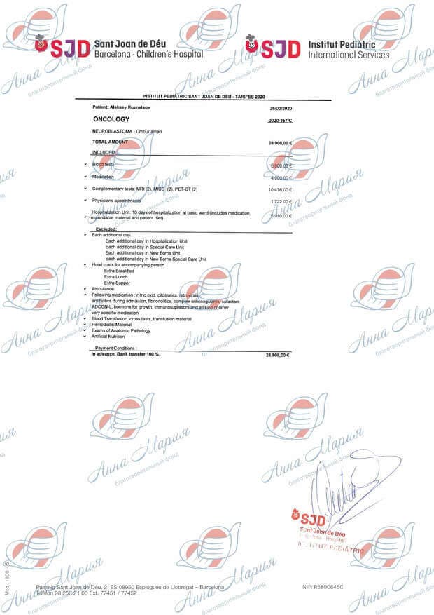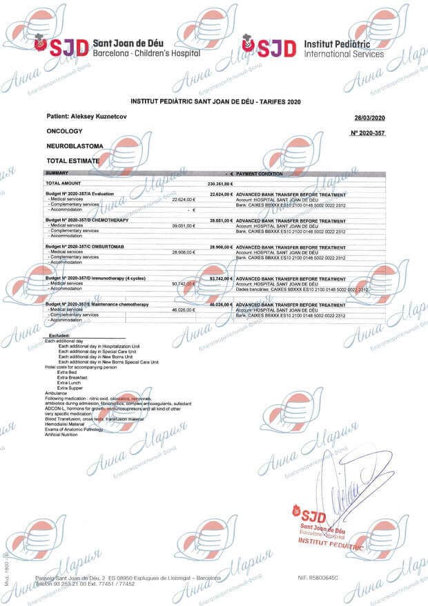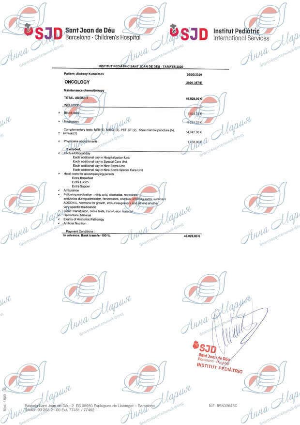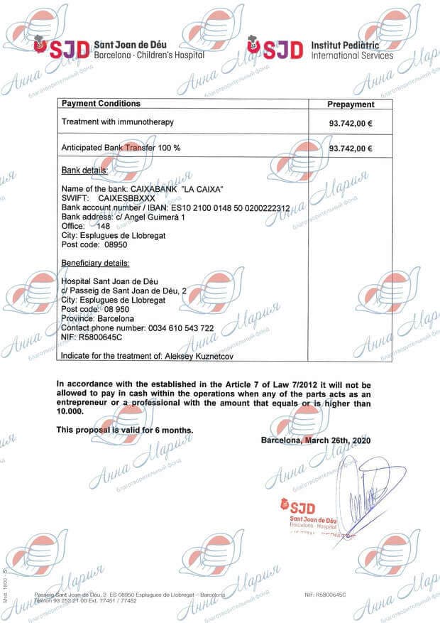 Данный препарат в России не зарегистрирован и не оплачивается из средств бюджета. Нам нужно было 15 000 000 рублей. Самостоятельно удалось собрать около 5 000 000 рублей. Остаток суммы нам собрал благотворительный фонд «Ворлд Вита». Лекарство закупили на все 5 курсов. Мы успешно прошли первый курс, и нас отпустили домой.