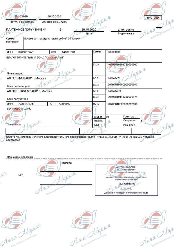 Иммунотерапию рекомендуется начать не позднее 100 дней с момента трансплантации костного мозга. Для Демида это начало ноября 2020 года. Таким образом, к началу ноября необходимо собрать примерно 30 000 000 рублей.