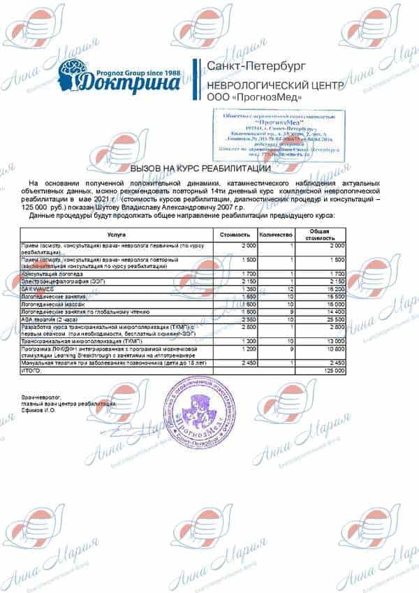 Что будем делать: курс реабилитации в НЦ ПрогнозМед «Доктрина», г. Санкт-Петербург.
