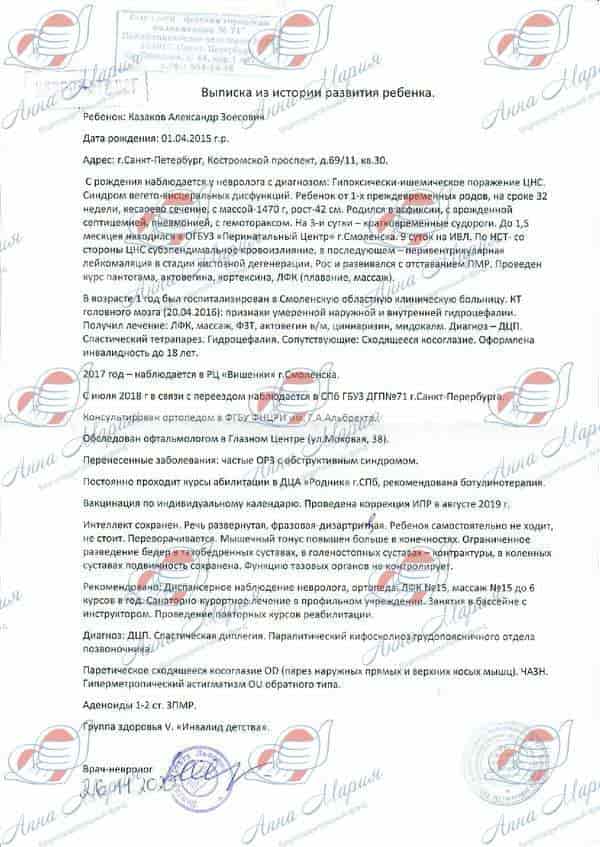 Ближе к году Сашеньку положили в детскую областную больницу для постановки диагноза. До этого момента уже ставили ЗРР и ЗПМР, но было понятно, что все намного серьезнее. После обследования врачами был поставлен диагноз ДЦП. А 1 июня 2016 года оформлена инвалидность.