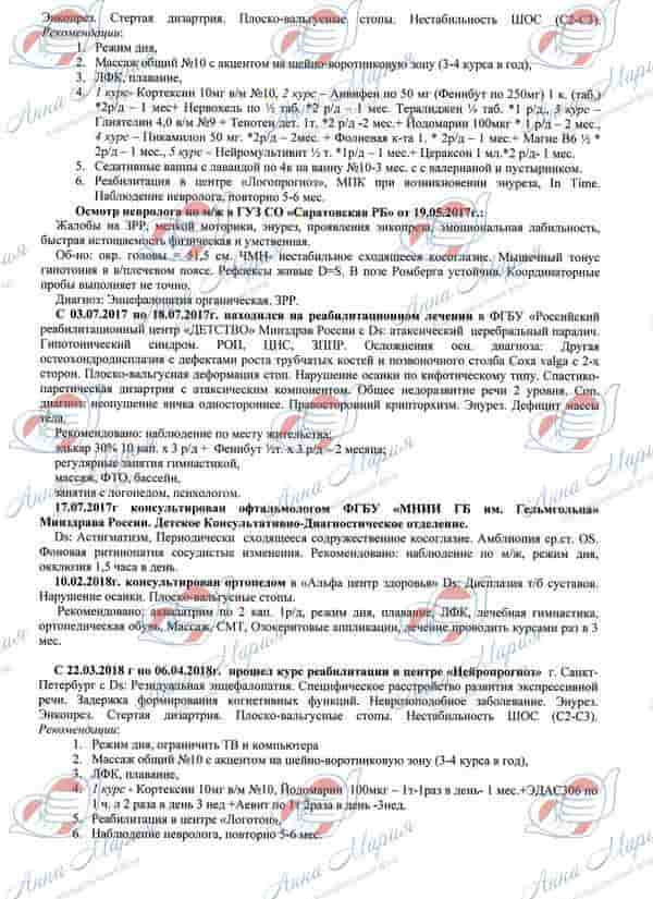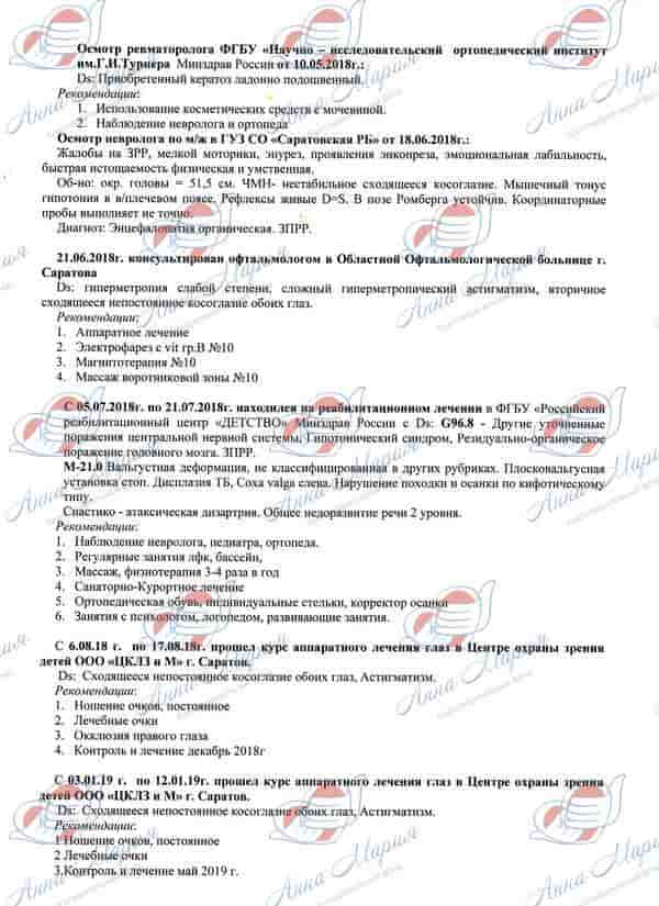 Проблема: Резидуальная энцефалопатия. Специфическое расстройство развития экспрессивной речи. Сколитическое нарушение осанки. Сходящееся непостоянное косоглазие обоих глаз. Астигматизм.