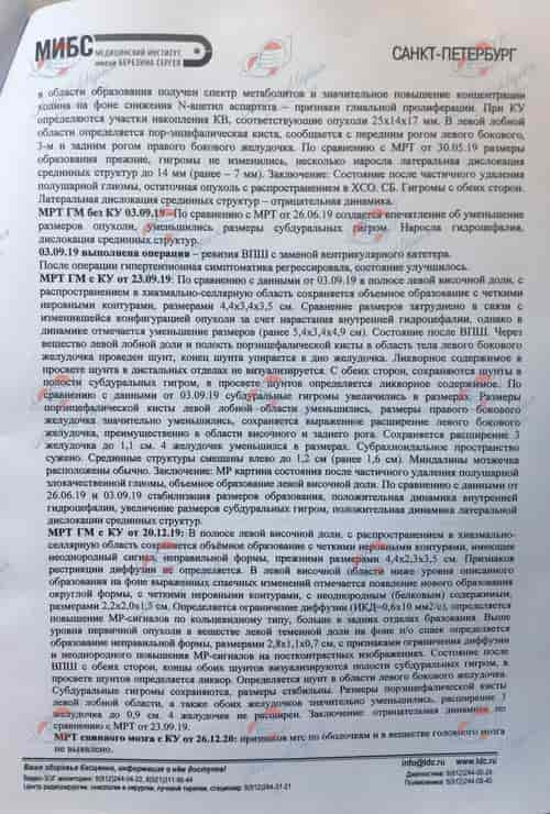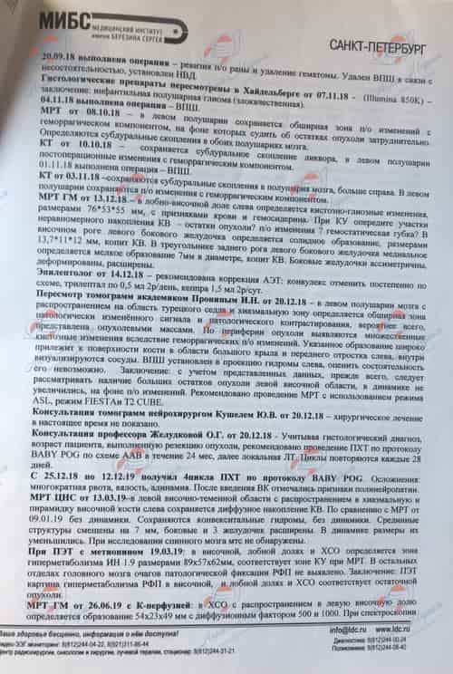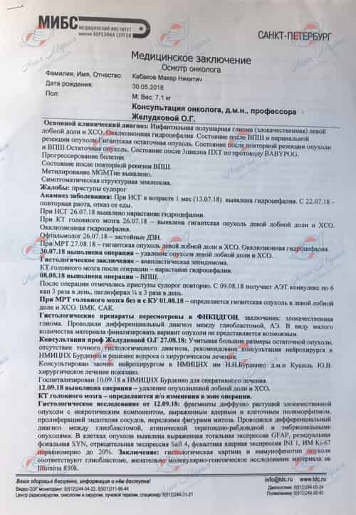 Макар с мамой были на консультации с лечащим врачом. И вот какие результаты: самое главное роста опухоли нет, но и уменьшения до конца, как прогнозировалось тоже не произошло. Врачи провели совещание по вопросу выбора метода дальнейшего лечения мальчика. Как сообщила мама Макара – она очень сильно боялась операции, и ей было страшно даже и думать об этом... Но все же, врачи приняли решение о продолжении таргетной химиотерапии в соответствии с первоначальным планом. Сейчас Макар сдает анализы и проходит осмотры у необходимых врачей. Контрольное обследование состоится через три месяца.