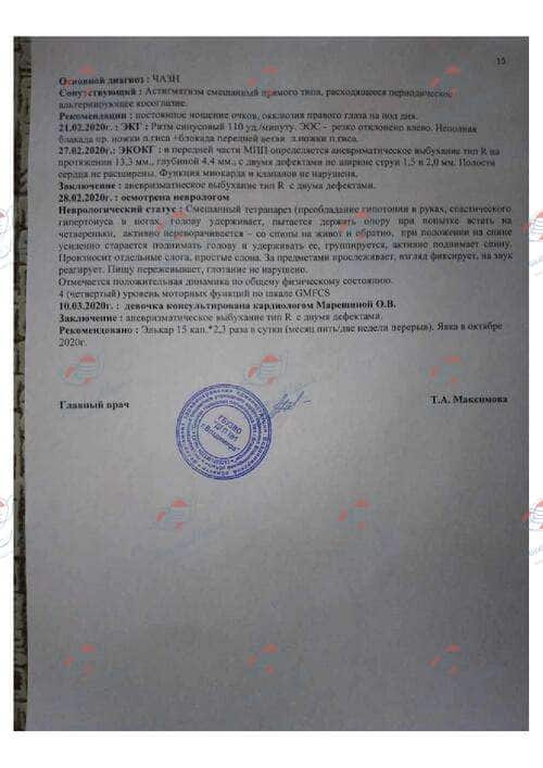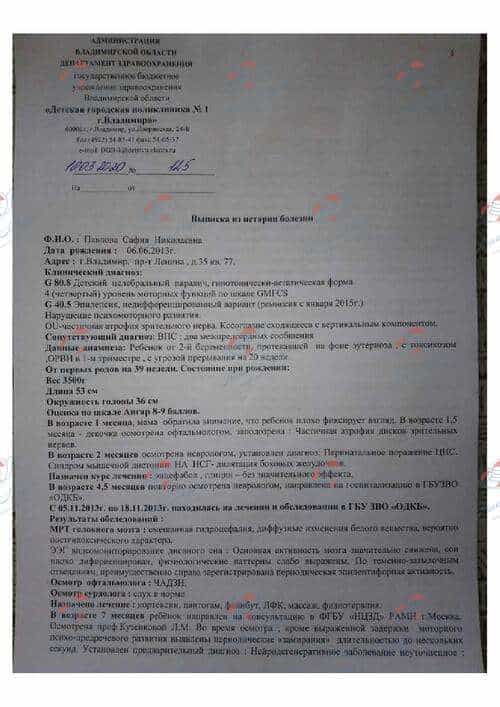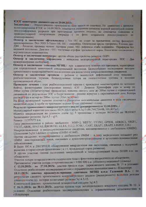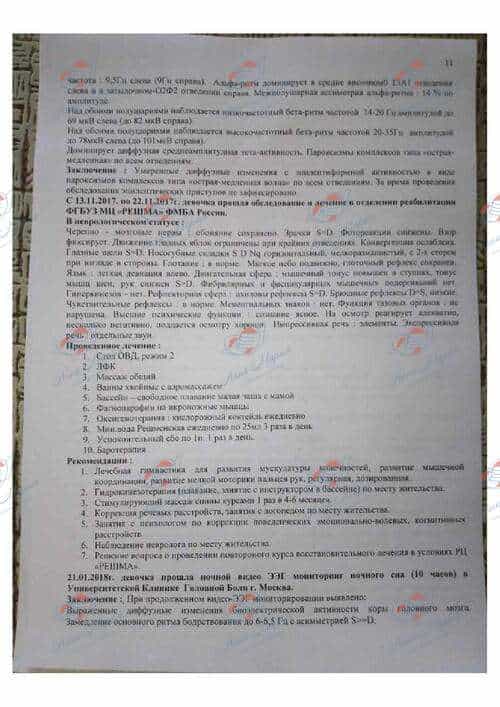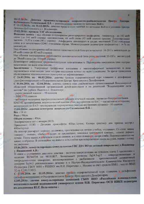 Не смотря на серьезные диагнозы при постоянной и качественной реабилитации Сафия может получить шанс на улучшение состояния здоровья и добиться хороших результатов. За последнее время дочка прошла не один курс дельфинотерапии и реабилитации в разных городах России. В планах дальнейшая постоянная реабилитация и каждодневные занятия.