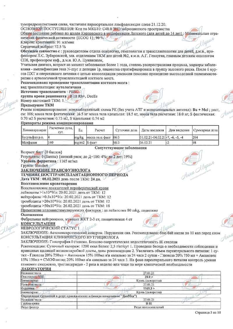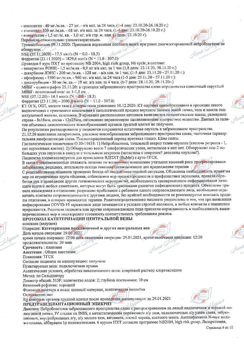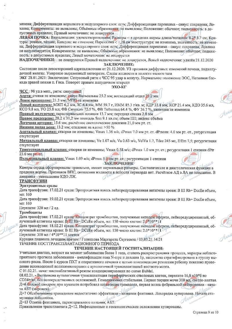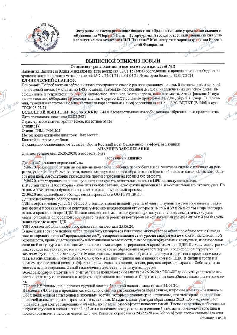 В Санкт-Петербурге она преодолела шесть курсов химиотерапии, моей доченьке удалили левую часть надпочечника, выполнили трансплантацию костного мозга. Только представьте себе, операция длилась 7 часов!!! Мне очень тяжело вспоминать то время. Я не знаю, как детский организм это выдержал. Но моя девочка оказалась сильной. Я постоянно находилась рядом с ней, когда она плакала, не хотела кушать, падала в обморок, лежала в реанимации на искусственном дыхании… Нас выписали в начале марта 2021 года.